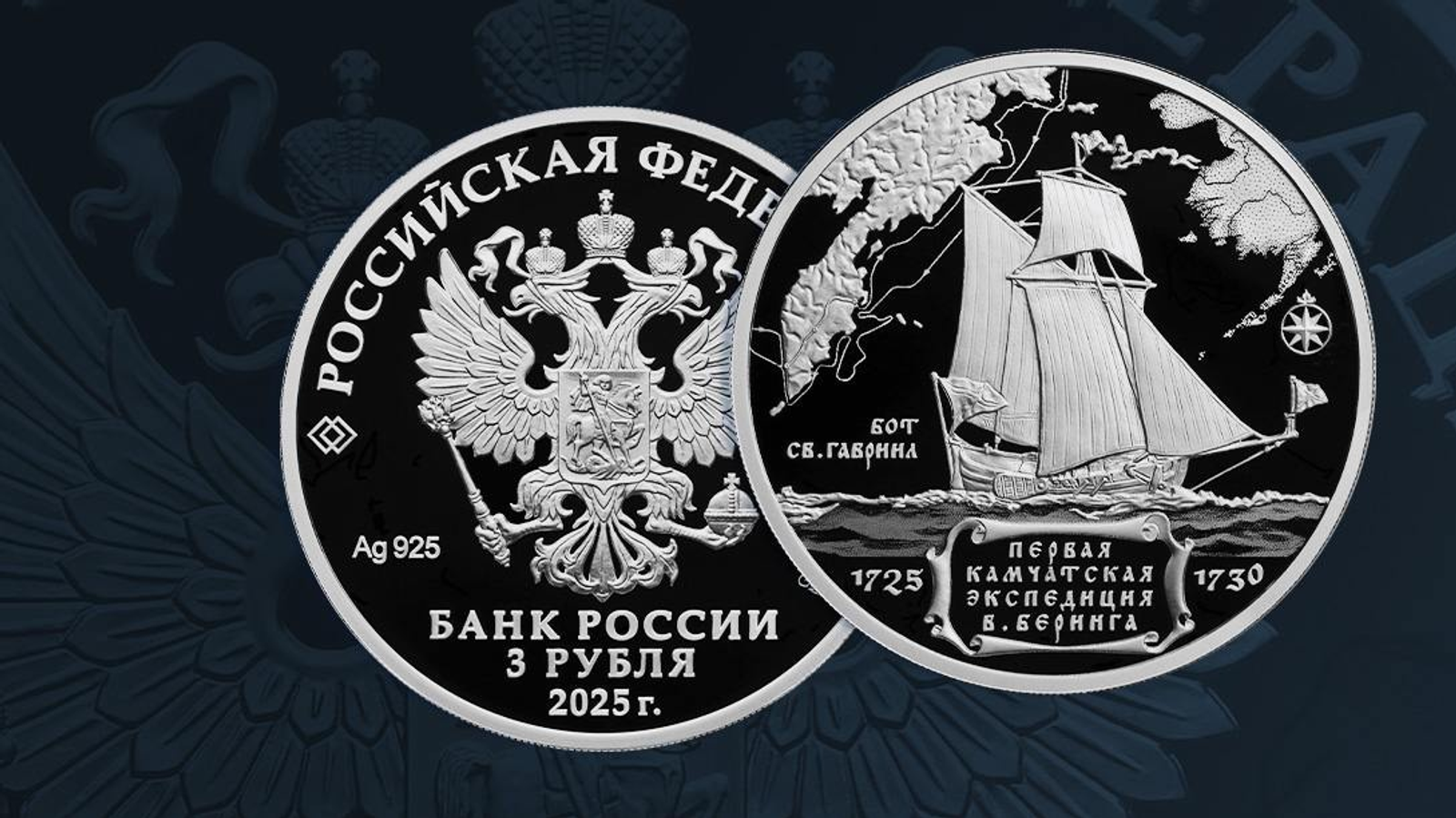«Триста лет назад российский офицер и мореплаватель Витус Беринг отправился в научную экспедицию. Она была организована по приказу Петра I для изучения северо-востока России и поиска перешейка или пролива между Азией и Америкой. К этому событию Банк России 26 марта 2025 года выпускает в обращение памятную серебряную монету номиналом 3 рубля „300-летие начала первой Камчатской экспедиции В. Беринга“ серии „Исторические события“», — говорится в сообщении Банка России.