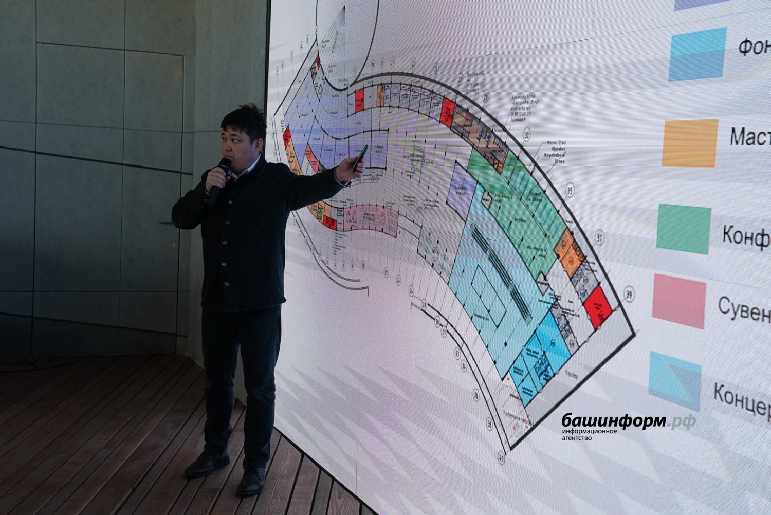 В основном здании предполагается разместить входной вестибюль с санузлами, гардеробом, комнатой матери и ребенка, молельной комнатой, экспозиционные залы, сувенирную, кафе, конференц-залы и большой зал на 1000 мест. Там можно будет проводить и концерты.