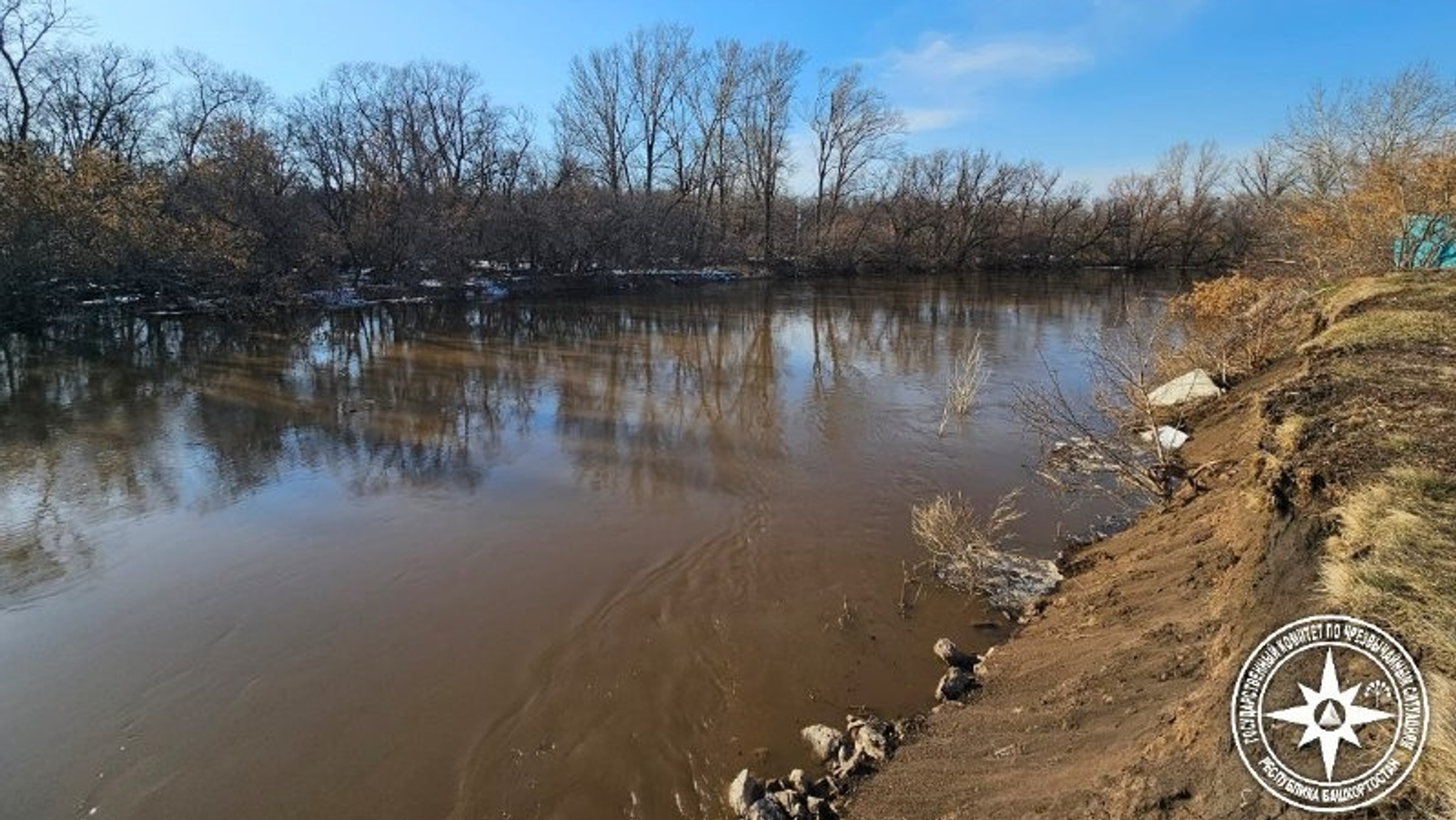 на реке Белой в городе Ишимбай Ишимбайского района, динамика уровня воды за сутки +18 см, текущий уровень 88 см, выход реки на пойму 415 см.