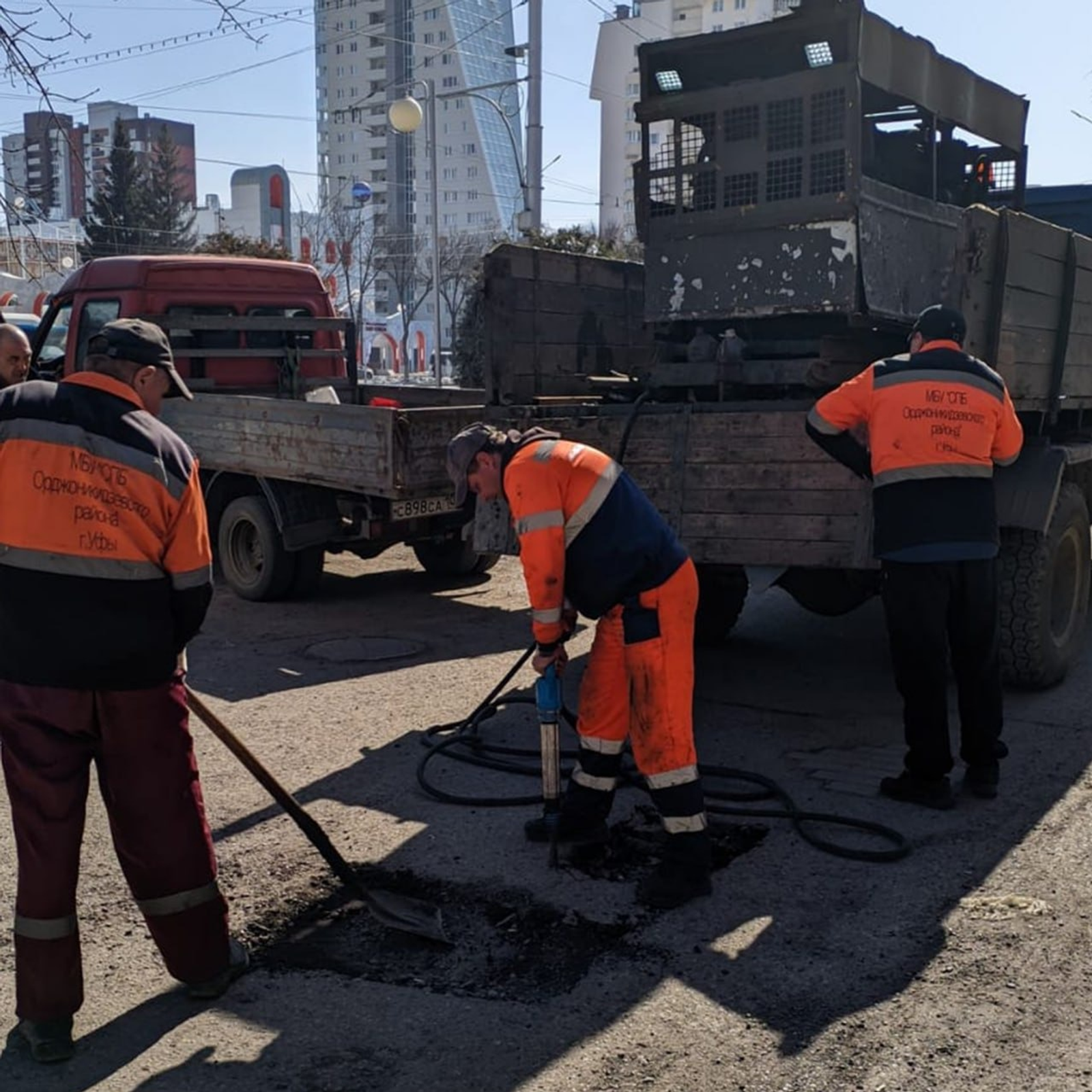 В Уфе сотрудники коммунальных служб продолжают выполнять ямочный ремонт и устранять повреждения на дорогах.