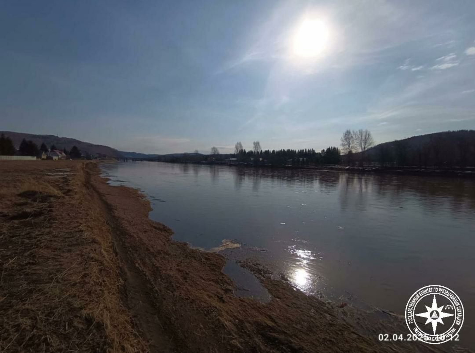 на реке Уфе в селе Красная Горка Нуримановского района, текущий уровень 292 см, снижение уровня воды на 22 см, выход реки на пойму 760 см;