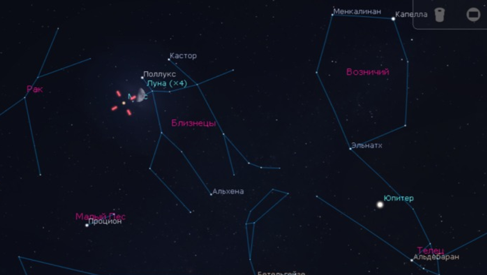 В небе над Башкирией Луна сблизится с Марсом ночью 6 апреля. Как сообщили в Уфимском городском планетарии, 5 апреля с наступлением темноты оба светила будут видны высоко над горизонтом на юго-западе в созвездии Близнецов. Марс по-прежнему виден рядом с яркими звездами Близнецов — Кастором и Поллуксом. Он, как яркая желтая звезда, будет виден слева от Луны. Луна будет в фазе первой четверти: Солнцем будет освещено 58% лунного диска.