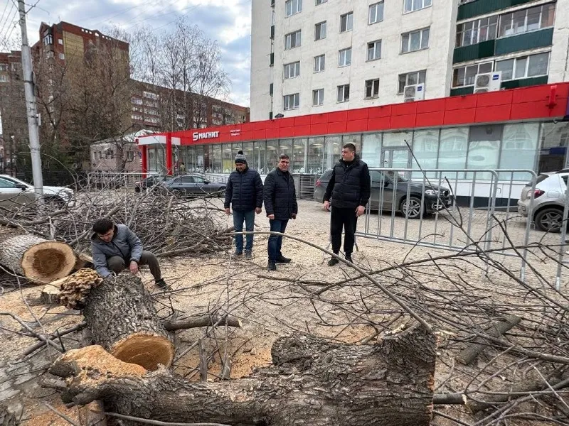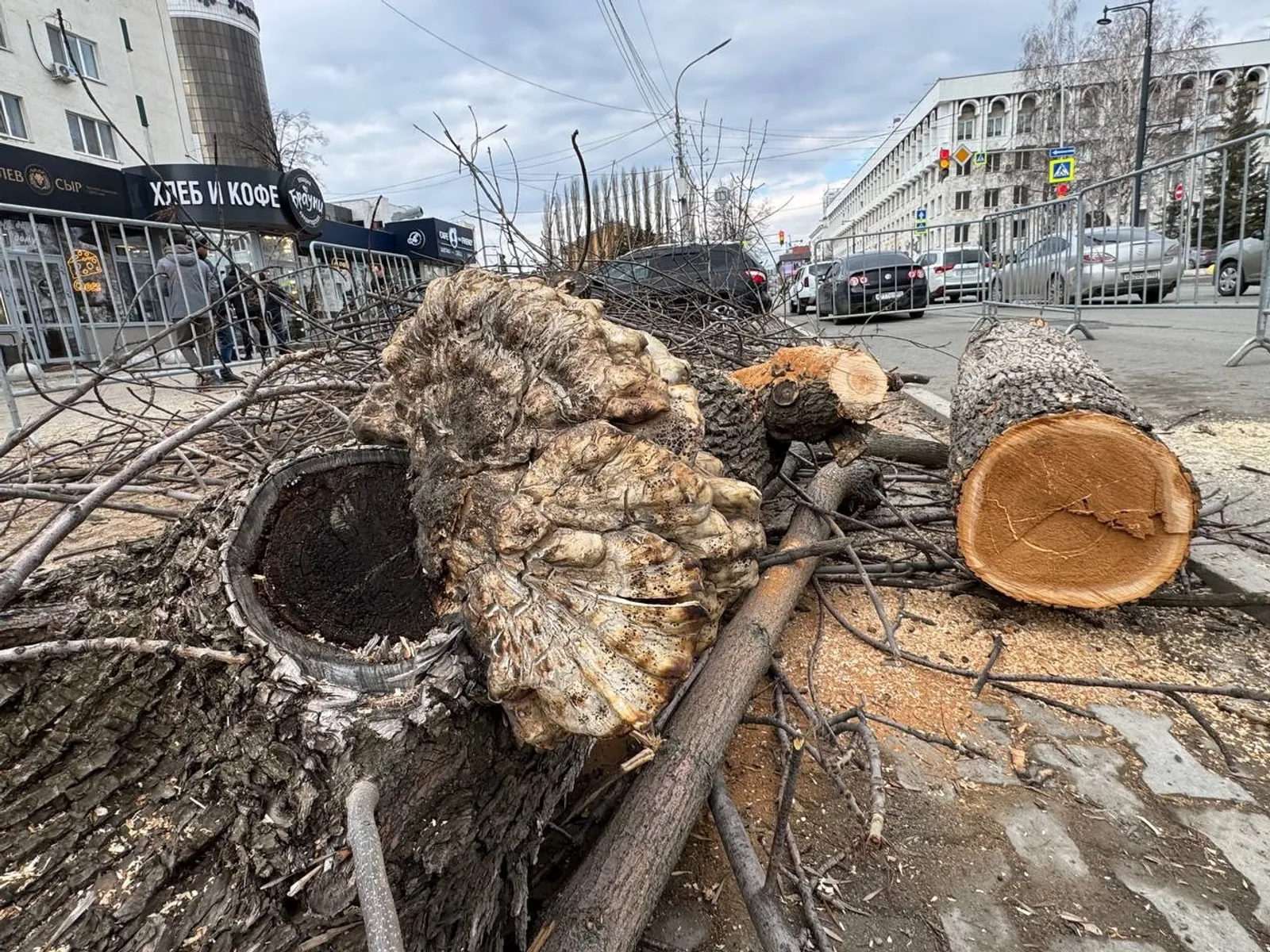 В Уфе на улице Чернышевского, на участке от Цюрупы до Ленина, спиливают ветхие деревья. Как объяснил глава администрации Кировского района Илвир Нурдавлятов, аварийные насаждения поэтапно меняют на крупномеры в рамках экологической акции «Зеленая Башкирия».