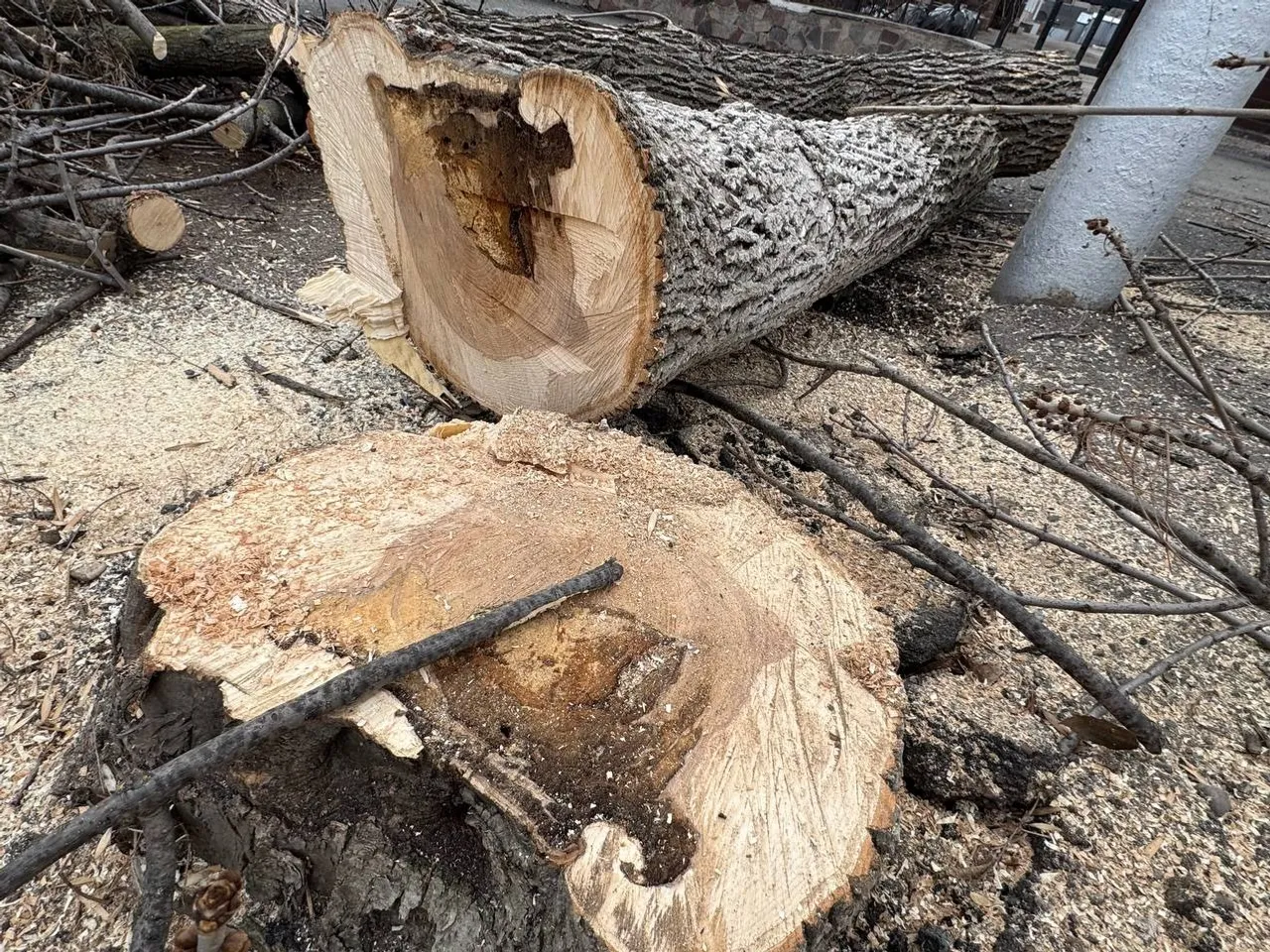 «Все правильно делаем. Очень важно вовремя обновлять аварийные и перестойные зеленые насаждения, особенно на улицах большого города, где много людей и машин. Лично убедился, что внутри спиленных деревьев – гниль», – написал он в своем телеграм-канале.