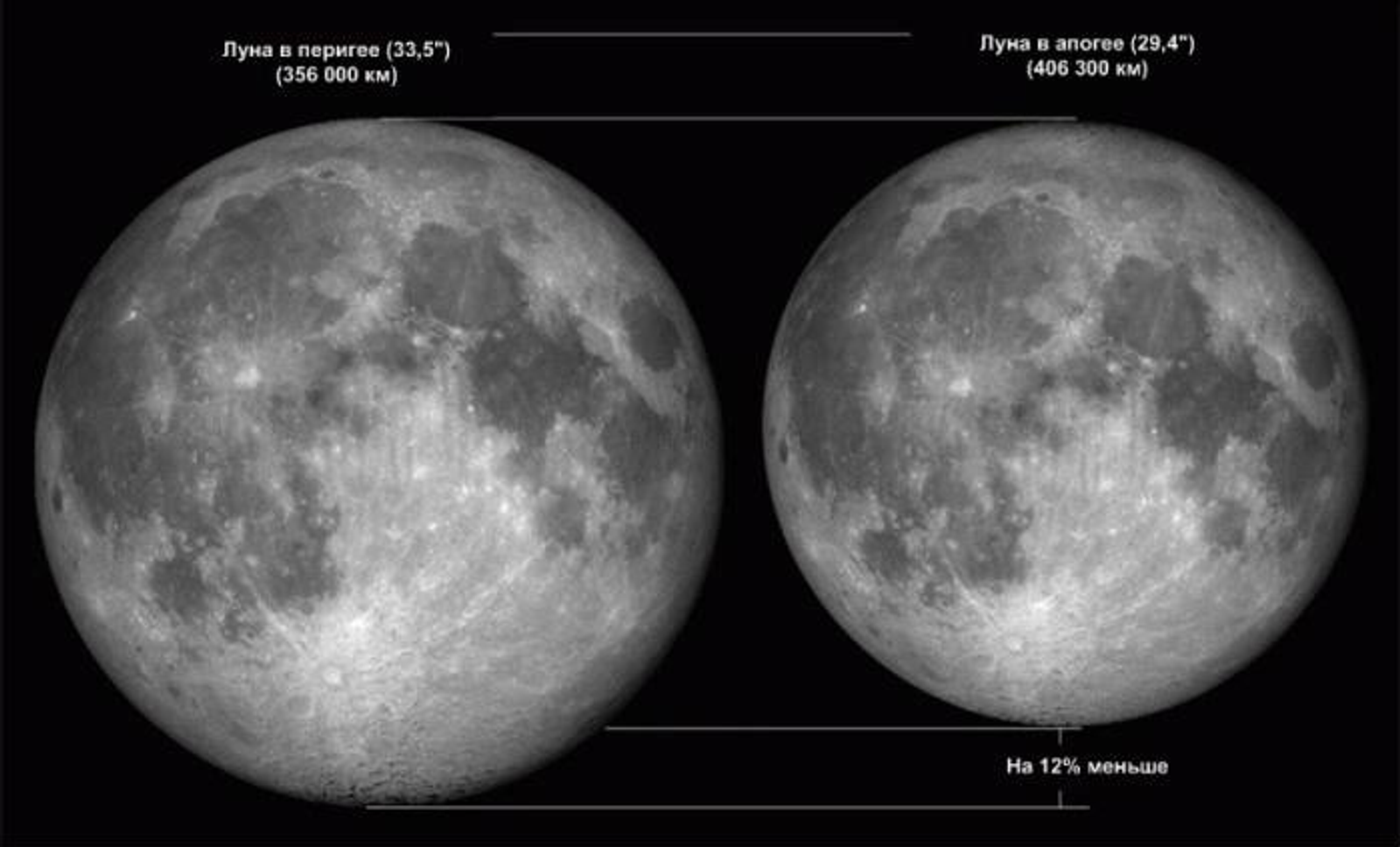 В микролуние Луна становится тусклее и меньше обычного. Но всё равно это событие, на котором можно потренировать глазомер: «Сможем ли мы заметить эту разницу в размерах и яркости Луны? Ведь её угловой диаметр во время микрополнолуния всего на 6-7% меньше, чем у средней полной Луны», — отмечают в планетарии.