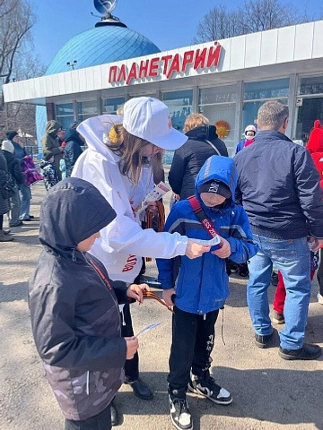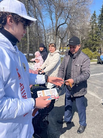 Акция продолжится до 9 мая, символ воинской славы и памяти активисты будут раздавать на главных улицах города, в парках и возле торговых центров.