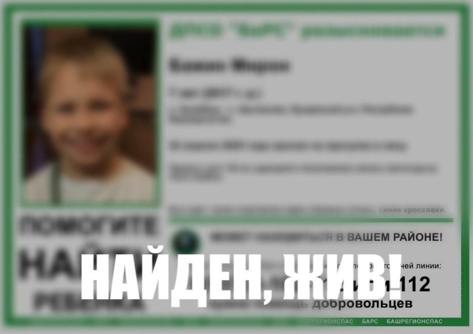 Поиски пропавшего во время прогулки в лесу 7-летнего мальчика в Буздякском районе Башкирии завершились благополучно. Ночью 23 апреля волонтеры сообщили об общем сборе для поисков ребенка, а сегодня утром добровольцы «Башрегионспаса» проинформировали, что мальчика нашли живым.