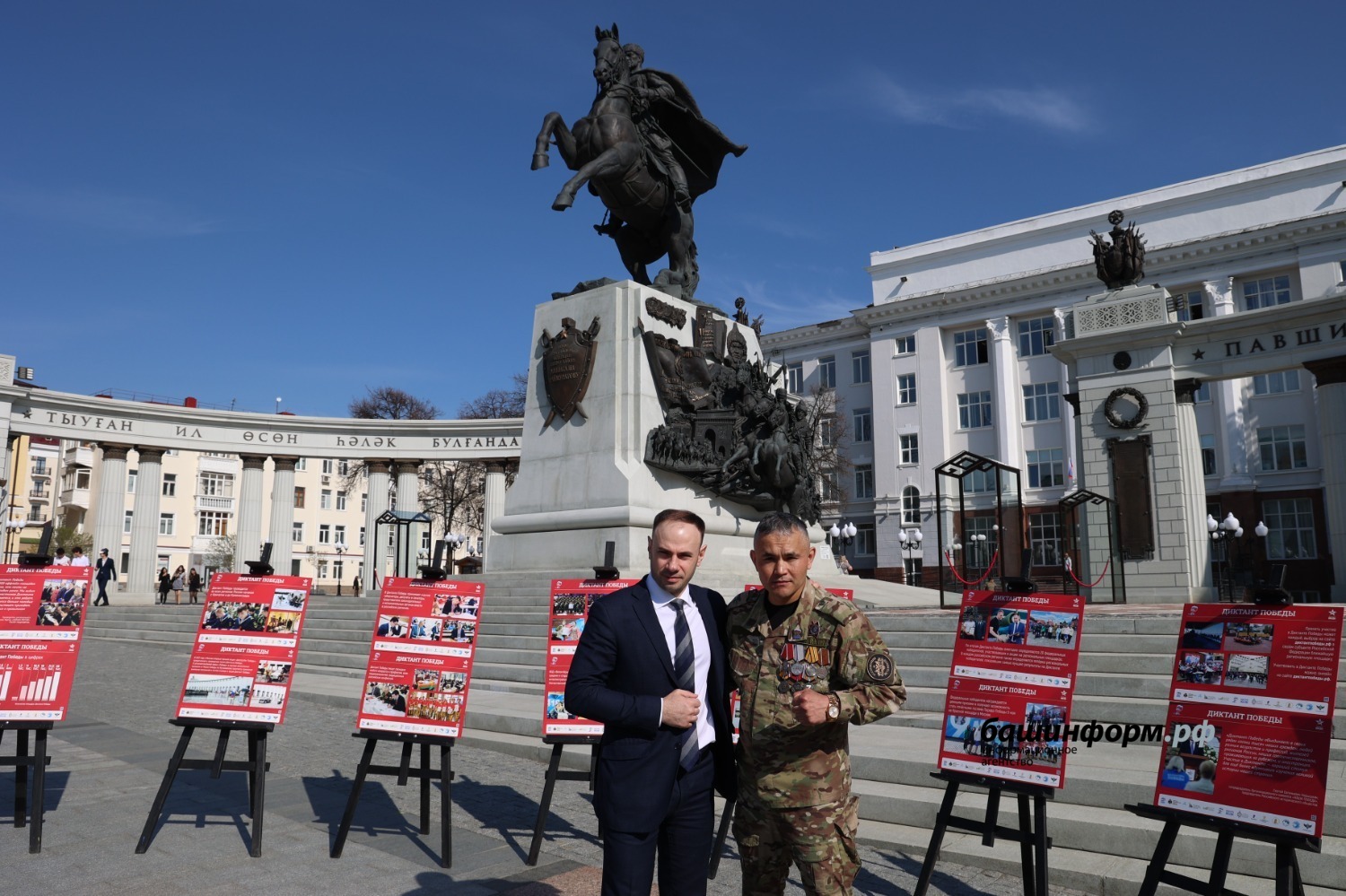 В Уфе начала работу уличная фотовыставка к Диктанту Победы. Экспозиция, созданная по партпроекту «Историческая память», расположилась на Советской площади. Именно здесь находится самый большой мемориальный комплекс Башкортостана в честь Великой Победы, посвященный Герою России, генерал-майору Минигали Шаймуратову. Легендарный комдив командовал дивизией, которая дала самое большое количество Героев Советского Союза среди сухопутных дивизий — 78. Имена каждого из них высечены золотыми буквами на граните памятника.