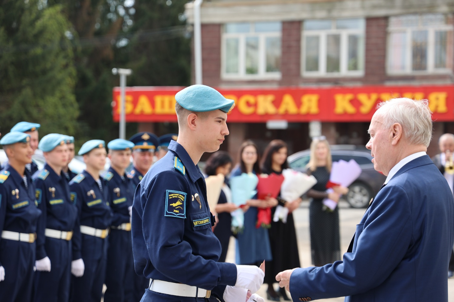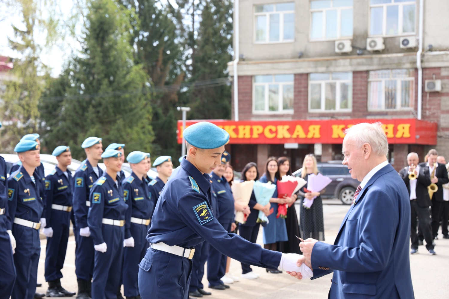 Кадетов приветствовали председатель Госсобрания Башкирии Константин Толкачёв, руководитель регионального исполкома «Единой России» Руслан Насретдинов, ветераны СВО, в том числе председатель Ассоциации ветеранов СВО в РБ Оскар Ситдиков, а также Артур Галеев и Олег Муфтахутдинов.