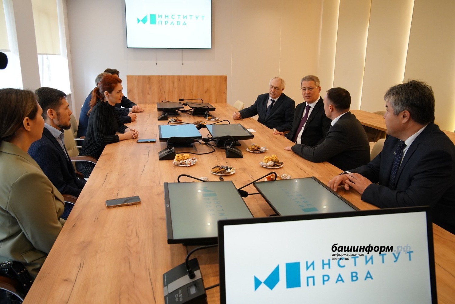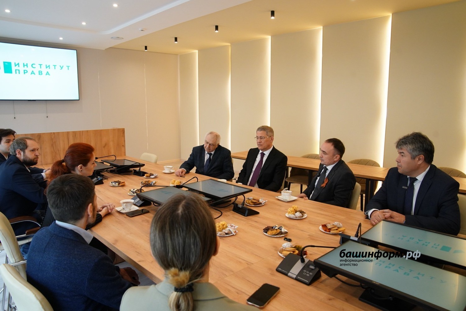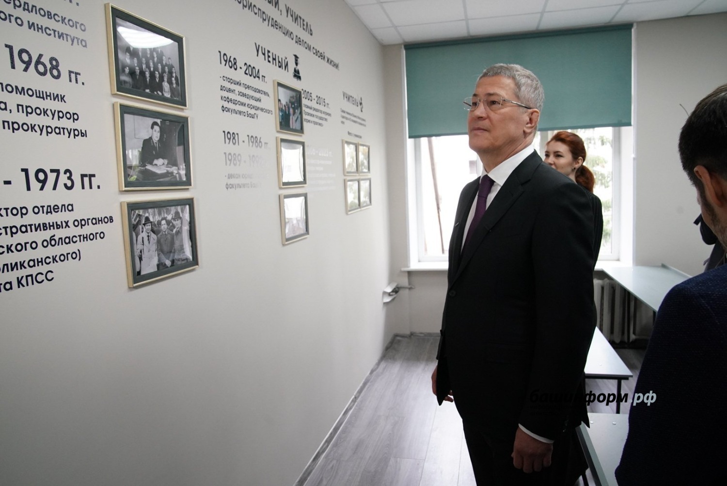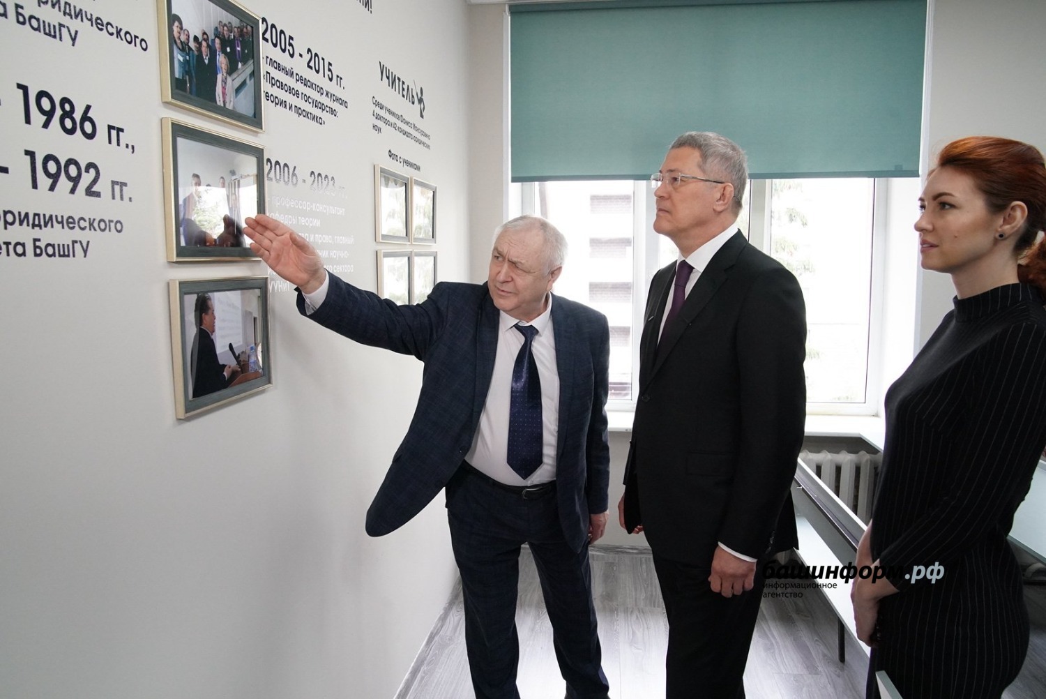 Сегодня Глава Башкортостана Радий Хабиров посетил Институт права Уфимского университета науки и технологий. Там он осмотрел недавно открытую аудиторию имени профессора Фаниса Раянова.