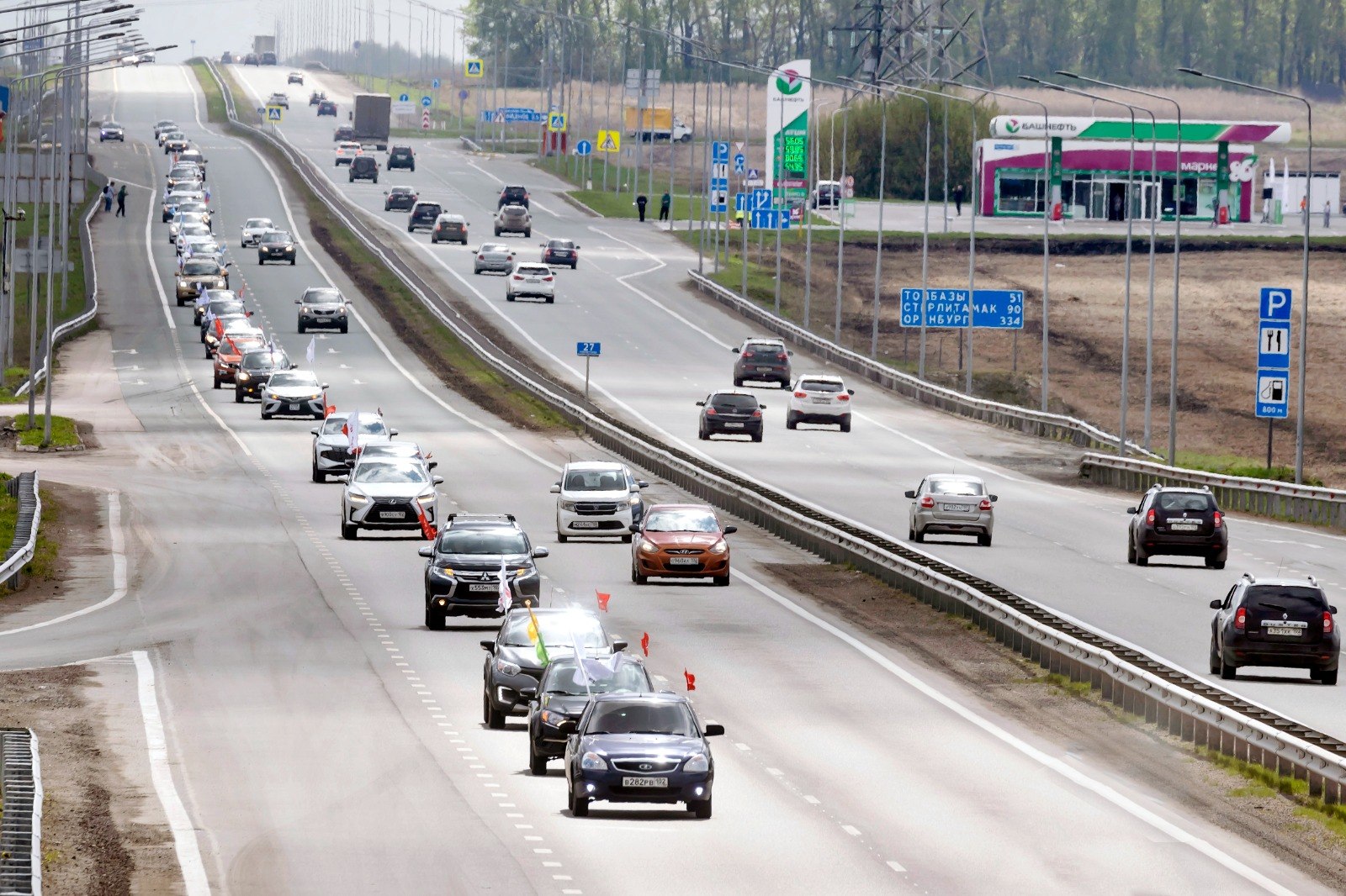 Колонны встретились на АЗС «Башнефть» в Уфимском районе, где для участников организовали праздничную программу с песнями военных лет. Водители смогли проверить знания о Великой Отечественной в викторине и получить памятные подарки.