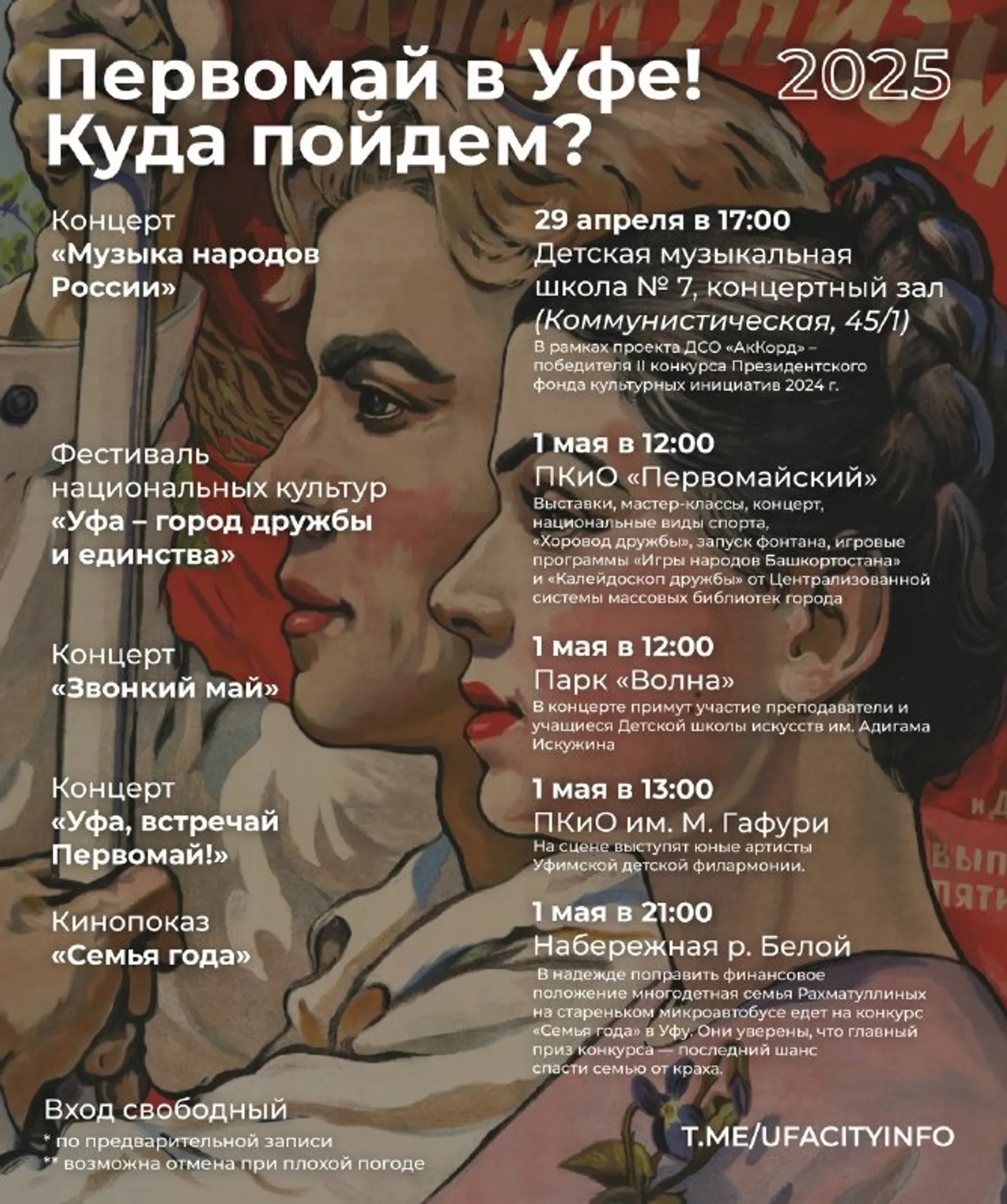 1 мая в парке «Первомайский» состоится фестиваль национальных культур «Уфа – город дружбы и единства». В программе: выставки, мастер-классы, концерт, национальные виды спорта, «Хоровод дружбы», запуск фонтана, игровые программы «Игры народов Башкортостана» и «Калейдоскоп дружбы» от централизованной системы массовых библиотек города.