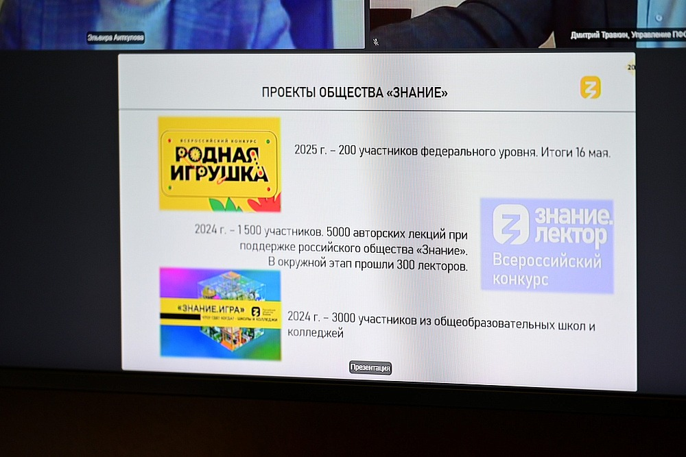 На заседании в режиме видеосвязи выступил руководитель управления по развитию ПФО общества «Знание» Дмитрий Травкин. Он отметил высокую поддержку просветительской деятельности со стороны республики.