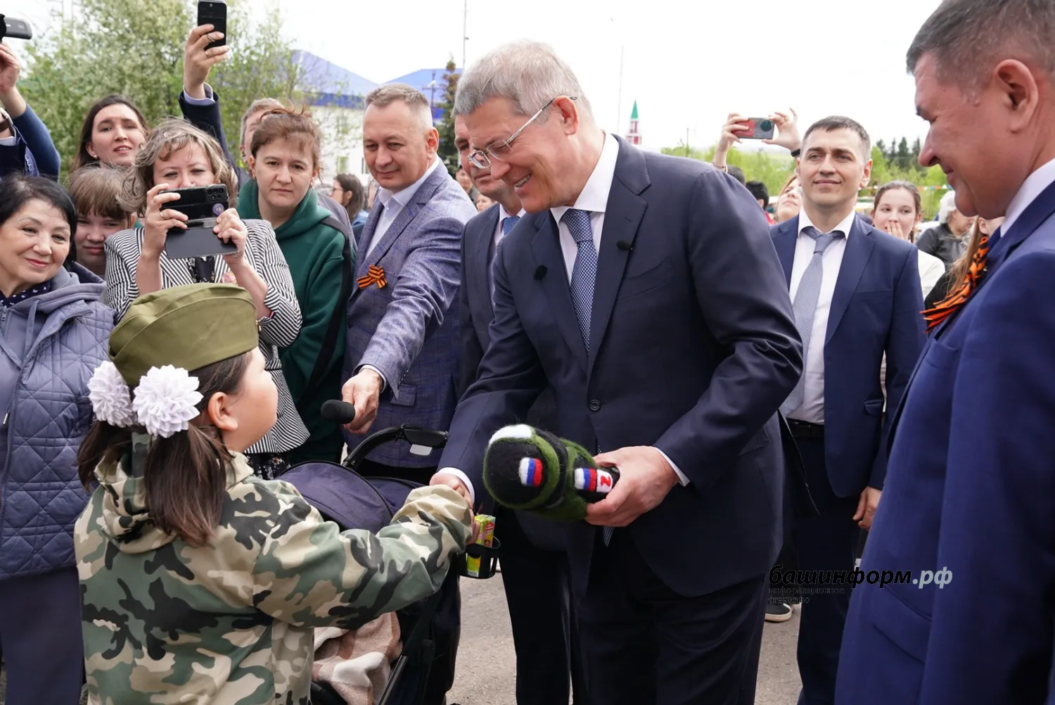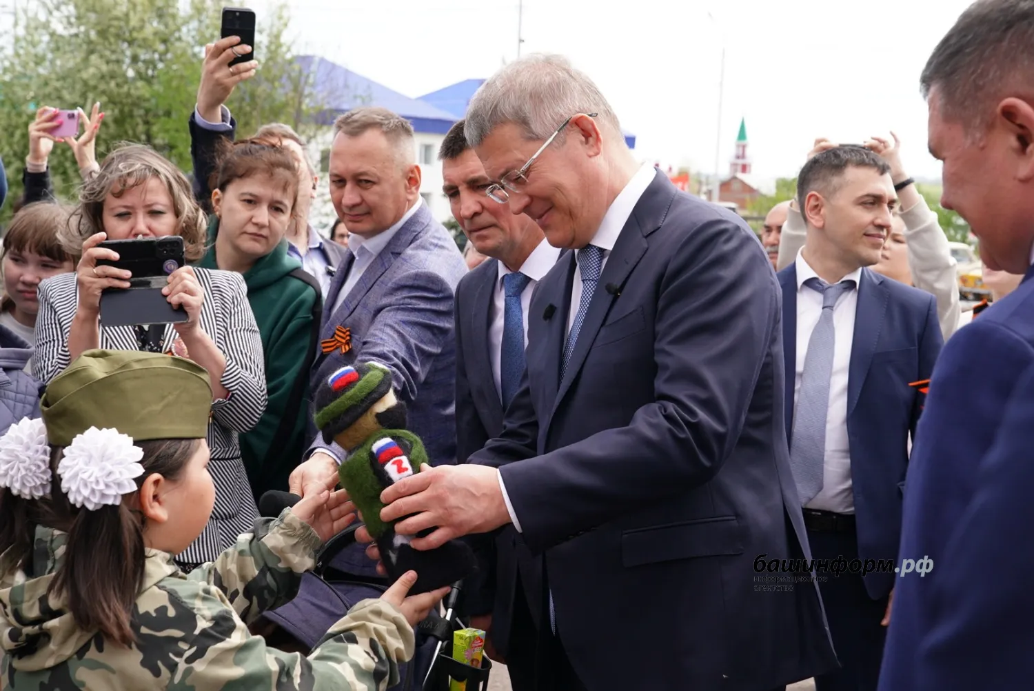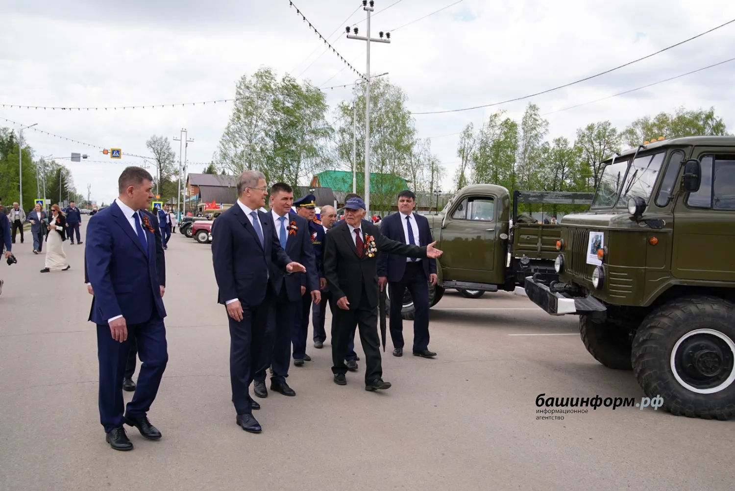 Глава республики вместе со зрителями понаблюдал за концертными номерами юных талантов села Чекмагуш и осмотрел передвижную выставку ретроавтомобилей. Председатель Совета ветеранов Чекмагушевского района, коллекционер ретромашин Идгар Еникеев рассказал, что в его коллекции есть, например, легендарные «Победа» ГАЗ-М-20, «Иван-Виллис» ГАЗ-67, вездеход ГАЗ-69, «Волга» ГАЗ-21 с оленем на капоте, ярко-жёлтый «Москвич-401» и другие модели. Идгар Еникеев ежегодно в День Победы в селе Чекмагуш проводит мини-парады военной ретро-техники.