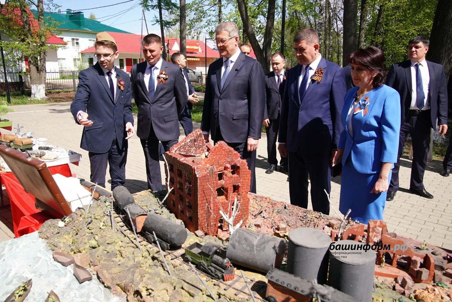 Глава региона ознакомился с диорамами, макетами и реконструкциями главных сражений Великой Отечественной войны, которые сделаны руками воспитанников местного центра детского творчества. Директор центра Разиля Камалова рассказала, что работа их воспитанницы Зухры Гаскаровой «За Волгой для нас земли нет», посвященная Сталинградской битве, стала победителем республиканского конкурса, посвященного 80-летию Великой Победы. Радий Хабиров осмотрел передвижные экспозиции школьных музеев. По словам главы администрации Чекмагушевского района Реканса Ямалеева, музеи постоянно пополняются новыми экспонатами, в том числе и силами участников специальной военной операции.