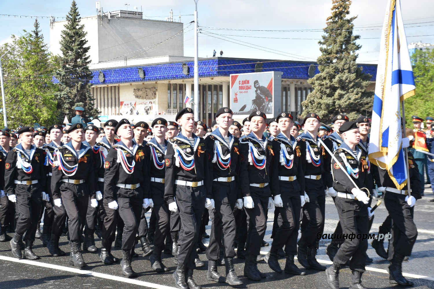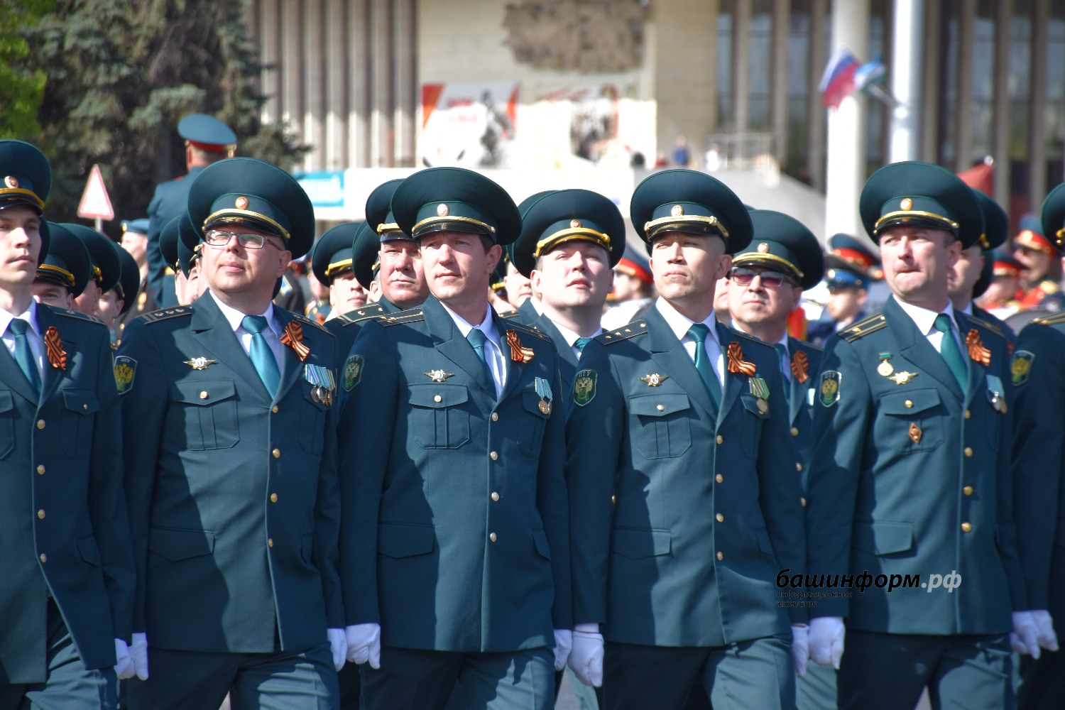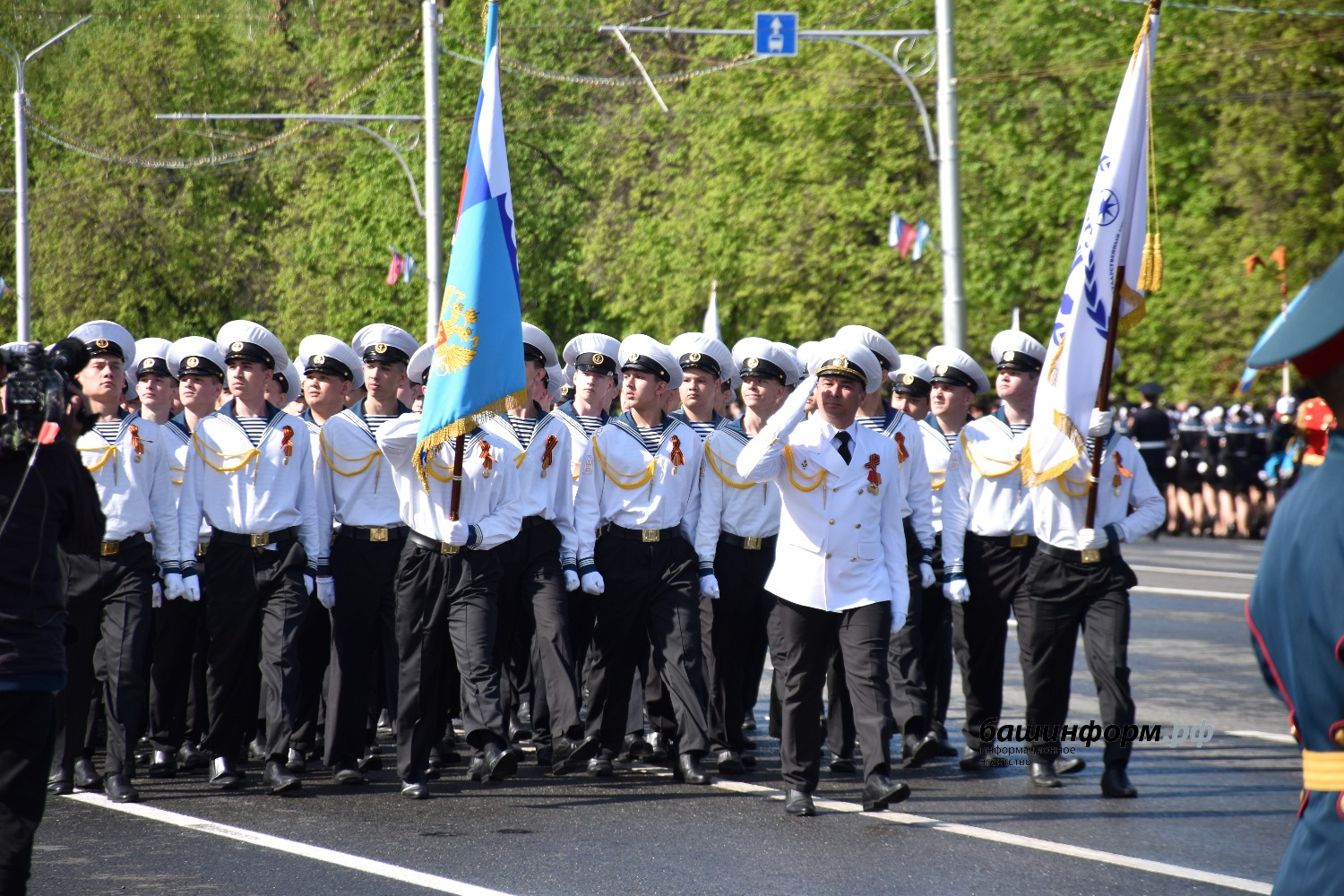 Сегодня он шёл во главе группы воспитанников кадетской школы-лицея села Булгаково Уфимского района и открыл парадный расчёт Всероссийского военно-патриотического движения «Юнармия».