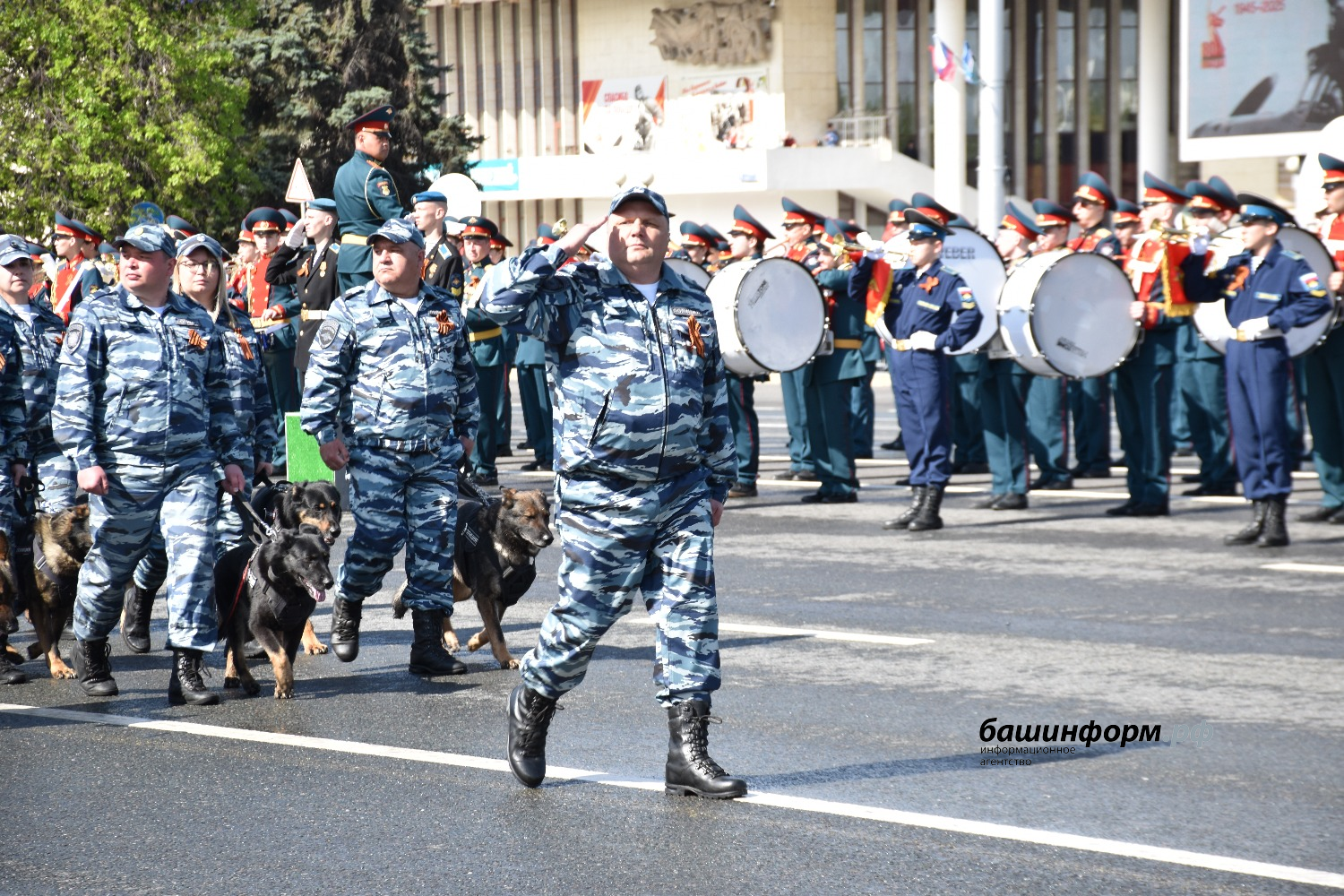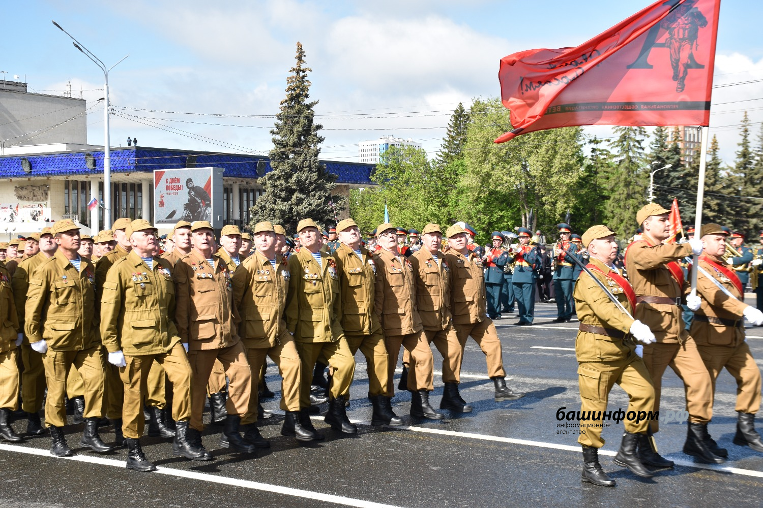 После них парад продолжили ветераны воздушно-десантных войск и спецназа, ветераны боевых действий в Афганистане, Закавказье, Югославии, Сирии, ветераны морской пехоты и спецназа ВМФ России, казаки Уфимско-Табынского отдела Оренбургского казачьего войска, сотрудники УФСИН по РБ, главного управления МЧС по РБ, полка ППС, Башкортостанской таможни, курсанты военной кафедры, юнармейцы, кадеты, ученики шаймуратовских классов.