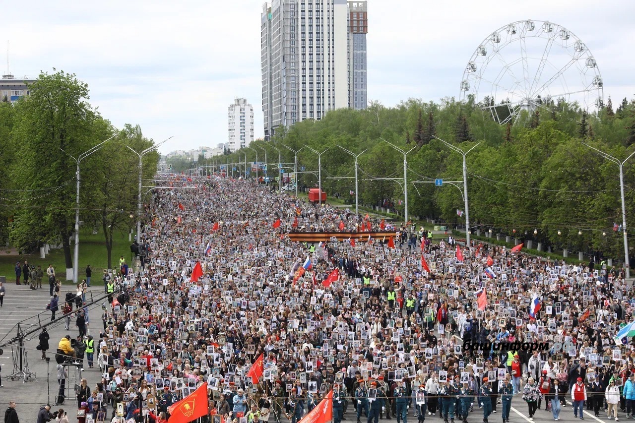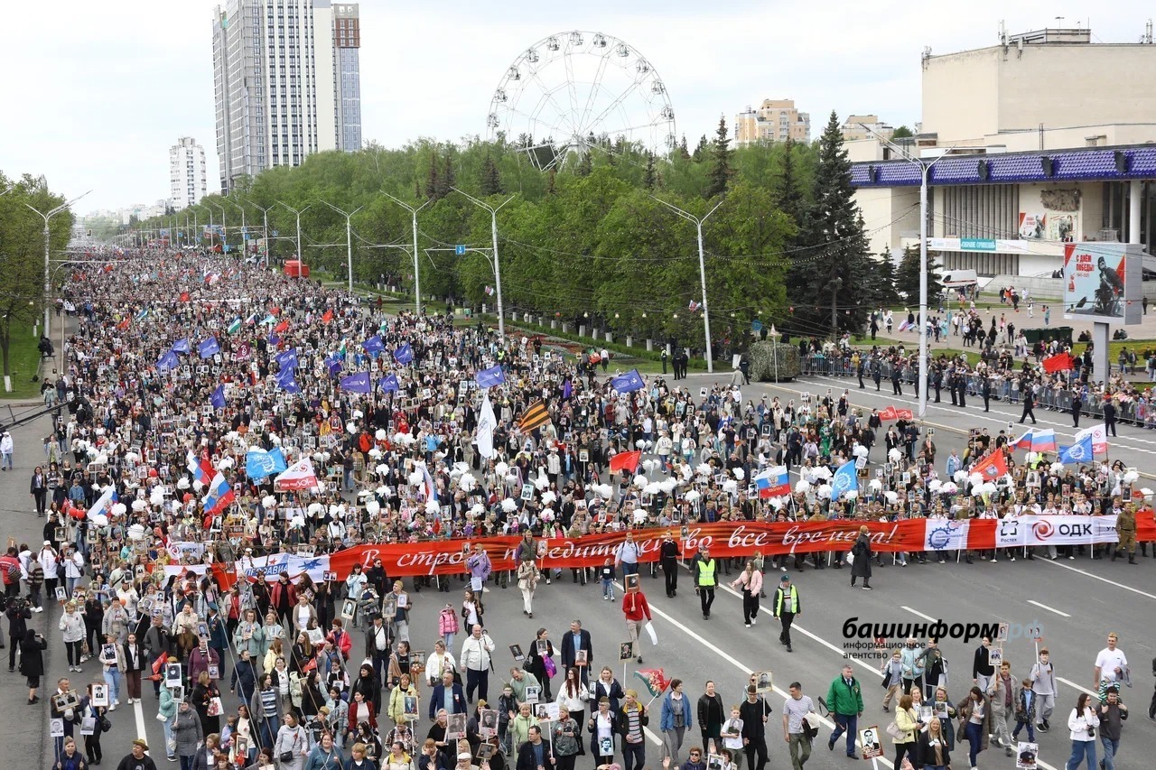 В Башкирии участниками акции «Бессмертный полк» стали более 510 тысяч человек. Цифру на оперативном совещании правительства в ЦУРе озвучил первый заместитель премьер-министра правительства РБ Урал Кильсенбаев. Напомним, самым масштабным «Бессмертный полк» был в Уфе, с портретами своих героев по проспекту Октября прошли 200 тысяч человек, писал ранее «Башинформ». Шествие после двухлетнего перерыва уже в восьмой раз прошло в традиционном формате.