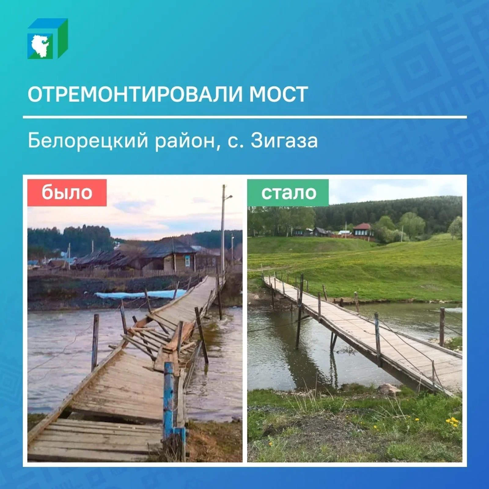 Ремонт моста в селе Зигаза Белорецкого района, разрушенного после весеннего половодья, завершен. Об этом информирует ЦУР Башкортостана.