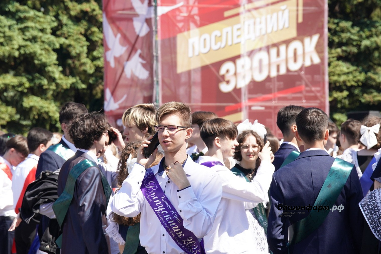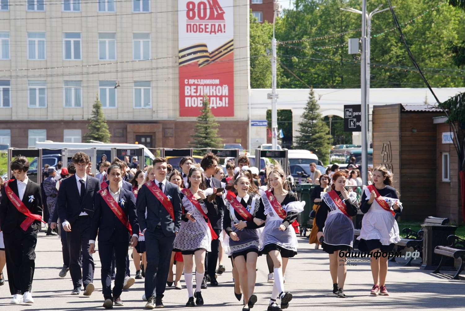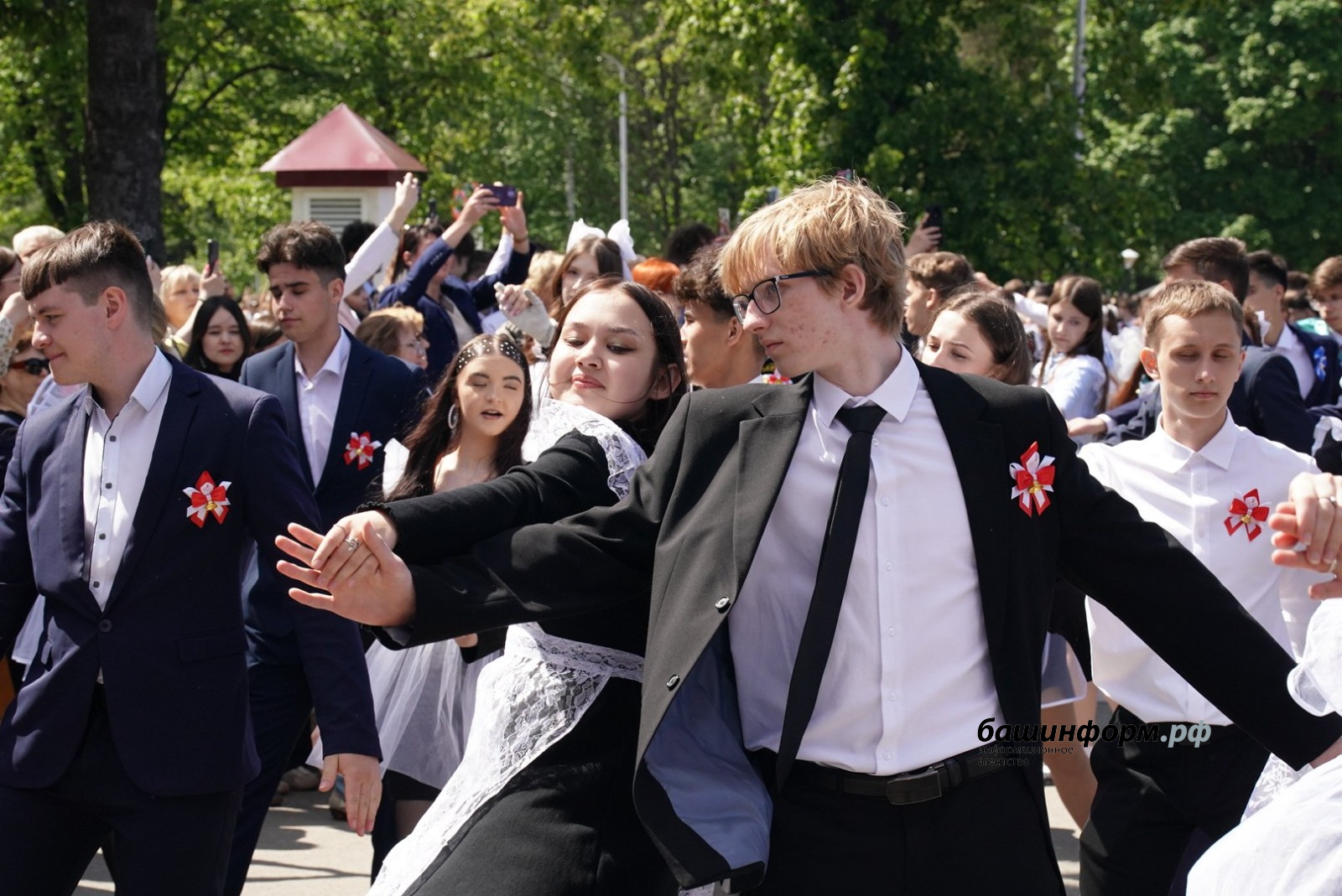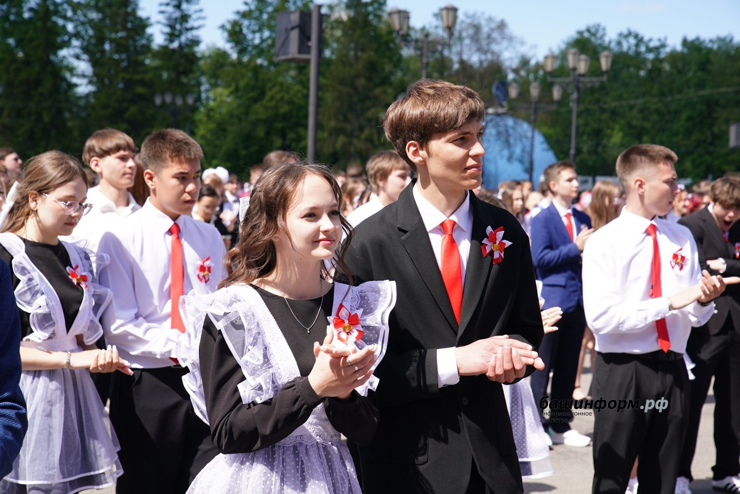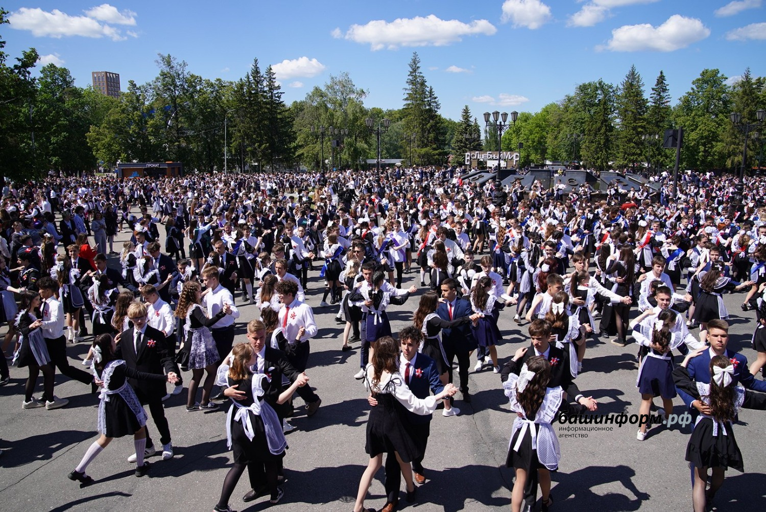 На площади имени Ленина состоялся общегородской «Последний звонок», в котором участвовали все уфимские школы. Выпускники станцевали вальс под аккомпанемент военного духового оркестра, который исполнил «Уфимские липы» и «Синий платочек».