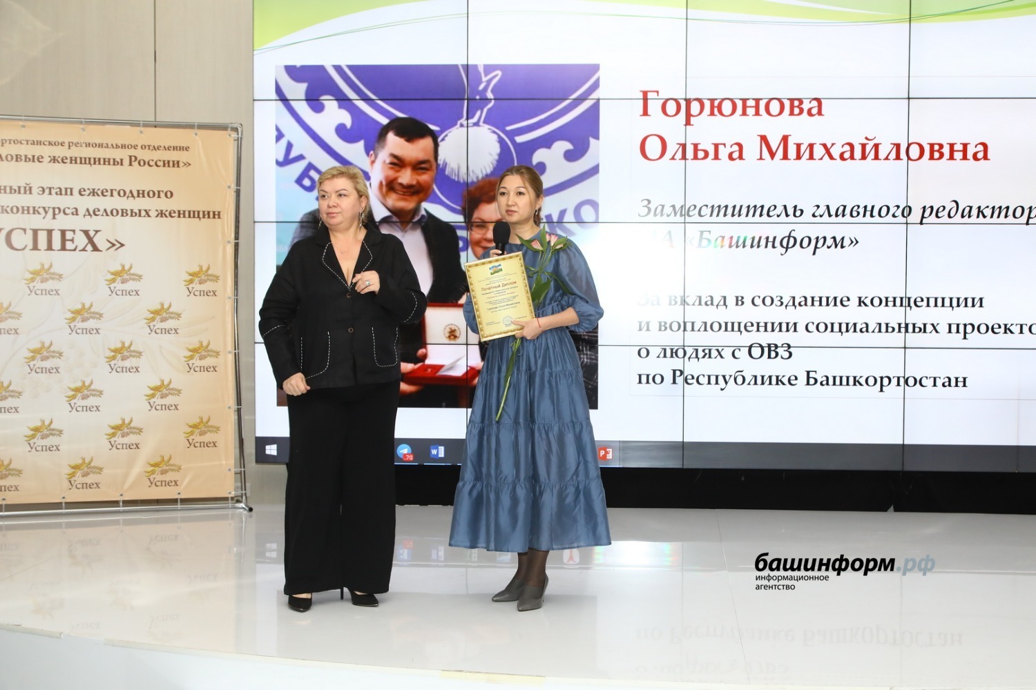 За активную жизненную позицию в профессиональной деятельности свою награду получили сразу две представительницы ИА «Башинформ» — заместитель главного редактора Ольга Горюнова и корреспондент Альфия Аглиуллина.