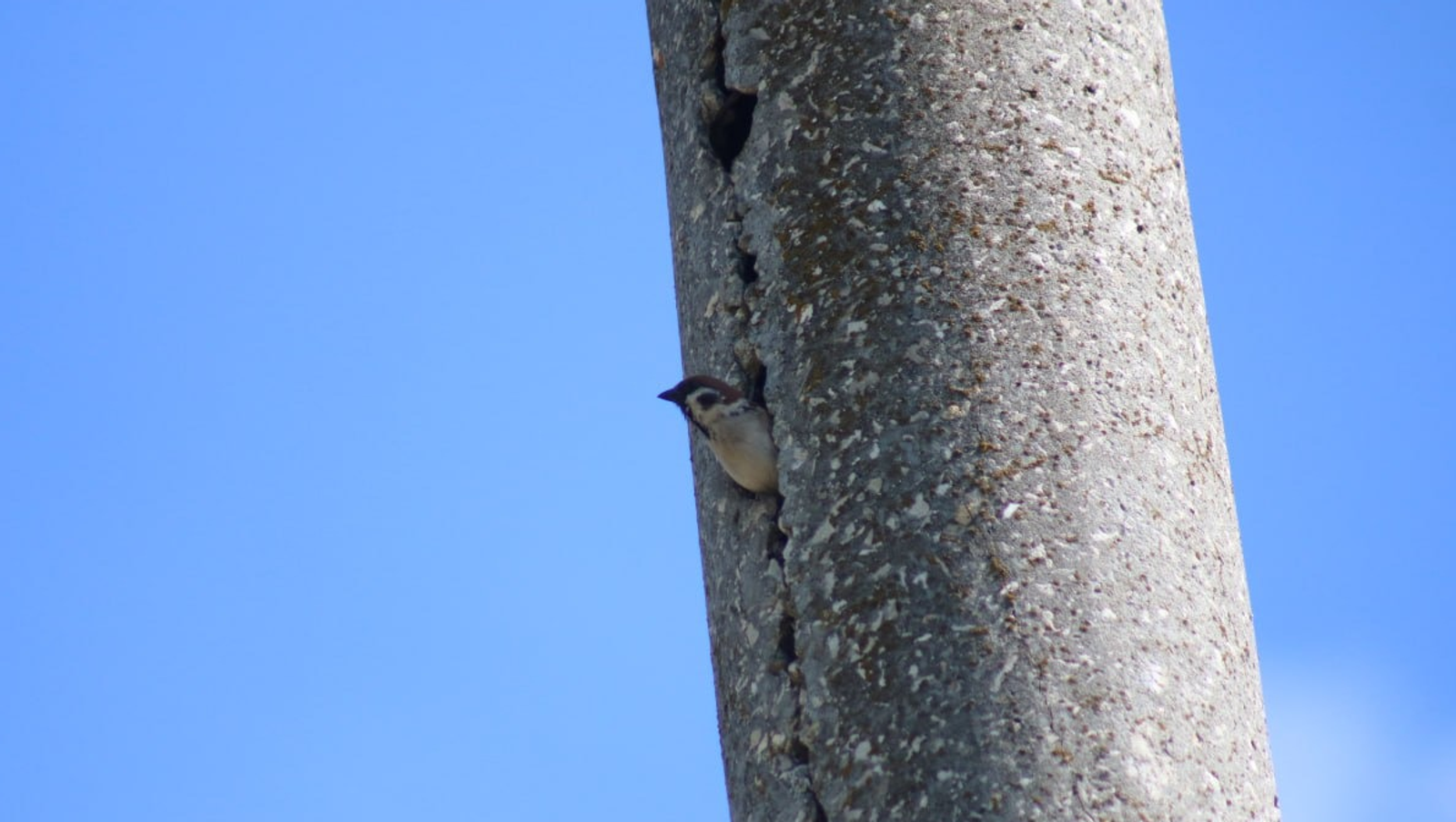 В Башкирии полевые воробьи устроили гнездо в электрическом столбе. Бетонный электрический столб в качестве жилья облюбовал самец, натаскал туда травы и привел подружку.