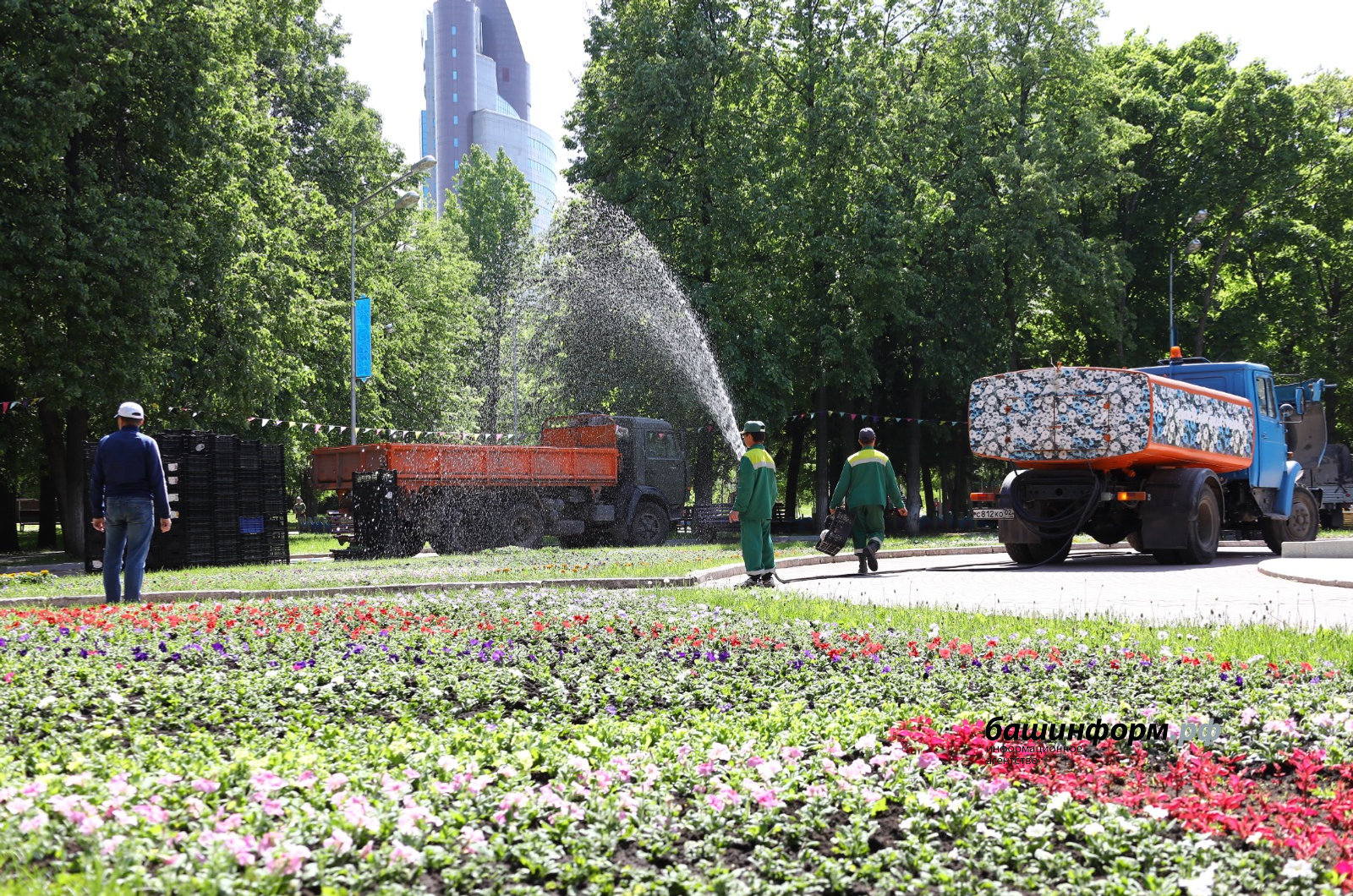 Коммунальные службы приводят в порядок и цветочные скверы – перед кинотеатром «Родина», ГКЗ «Башкортостан», Национальным молодежным театром имени Мустая Карима. Работы обещают выполнить в срок до 10 июня.