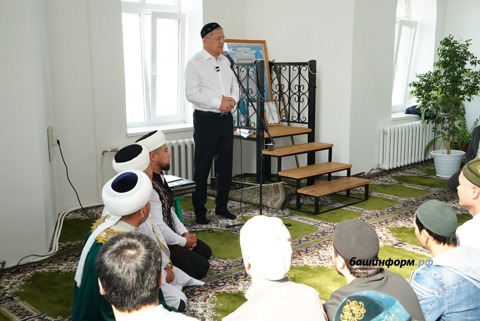 «Ҡәҙерле мосолман ҡәрҙәштәр! Хөрмәтле мөфтөй Айнур-хәҙрәт! Изге Ҡорбан байрамы менән һеҙҙе ихлас ҡотлайым! Уважаемый муфтий Айнур-хазрат! Уважаемые соотечественники! Поздравляю вас с праздником Курбан-байрам! Это главный праздник ислама. В этот день все мы молимся за наши семьи, за наших родных и близких. В этот день мы понимаем главные ценности ислама — добро, милосердие. В этот день мы помогаем тем, кто больше всего в этом нуждается. Конечно, в эти дни все мы молимся за наших воинов, которые защищают нас, чтобы они вернулись домой живыми и здоровыми, с победой. Это очень важно. Благодарю наших духовных лидеров за ваши усилия по поддержанию мира, межнациональной дружбы в нашей республике. Большая вам благодарность, уважаемый Айнур-хазрат. Всем желаю мира, добра, благополучия. Ныҡлы һаулыҡ, именлек, таҙалыҡ, бәхет теләйем. Байрам менән!», — сказал Радий Хабиров.