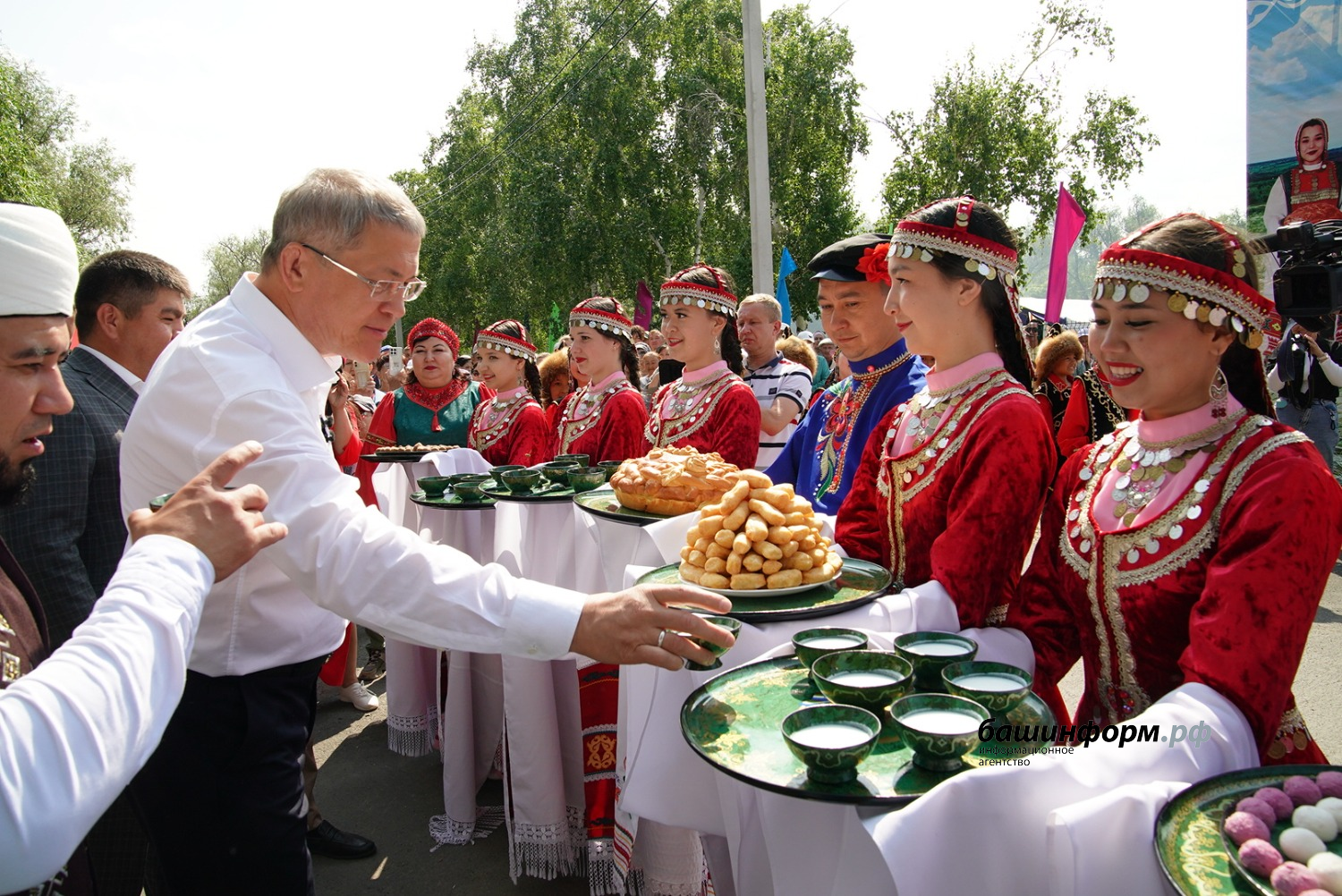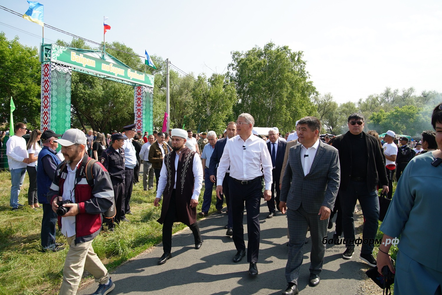 Сегодня в селе Акъяр Хайбуллинского района Глава Башкортостана Радий Хабиров посетил районный сабантуй, который прошел на стадионе «Урожай».