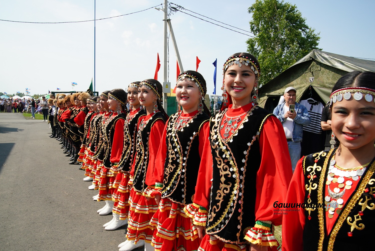 «Хөрмәтле Хәйбулла халҡы! Ҡәҙерле дуҫтар! Хөрмәтле ҡунаҡтар! Уважаемые хайбуллинцы, дорогие друзья. Уважаемые гости, поздравляю с праздником Сабантуй. Желаю всем мира, добра, благополучия. Так совпало, что сегодня в Хайбуллинском районе Сабантуй проводится в праздник Курбан-байрам. Поэтому позвольте мне поздравить вас с этим священным днем для мусульман и пожелать всего самого доброго. Хочу поблагодарить уважаемых хайбуллинцев за добросовестный труд, пожелать вам хороших урожаев, развития. Управленческой команде, главе района — успехов в этой работе. Уже четвёртый год идёт СВО. И, конечно, для нас сейчас самое главное поддержать наших воинов, которые выполняют свой долг. Вот сегодня перед нами сидят наши бойцы, они отслужили, они выполнили свой долг — в вашем лице я хочу сказать тысячам, десяткам тысяч воинов, что вы самые главные люди для нас. Мы вами гордимся. И примите слова глубокого уважения и благодарности. Мы во всем вам будем помогать. Хочу пожелать вам сегодня замечательного настроения, праздника. Всего самого доброго. Барығыҙға ла ныҡлы һаулыҡ, именлек, бәхет теләйем! Байрам менән, хөрмәтле Хәйбулла халҡы», — сказал Радий Хабиров.