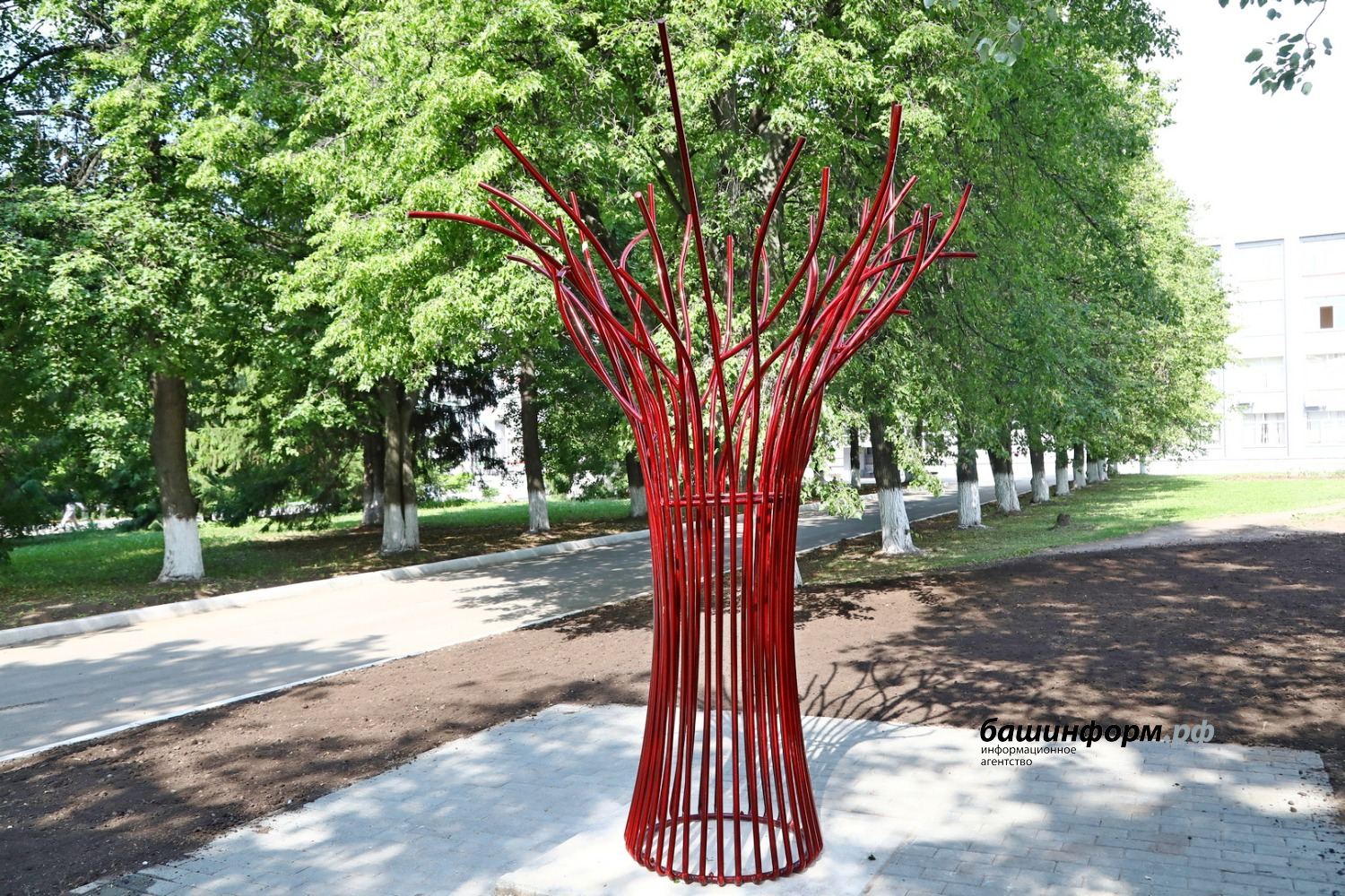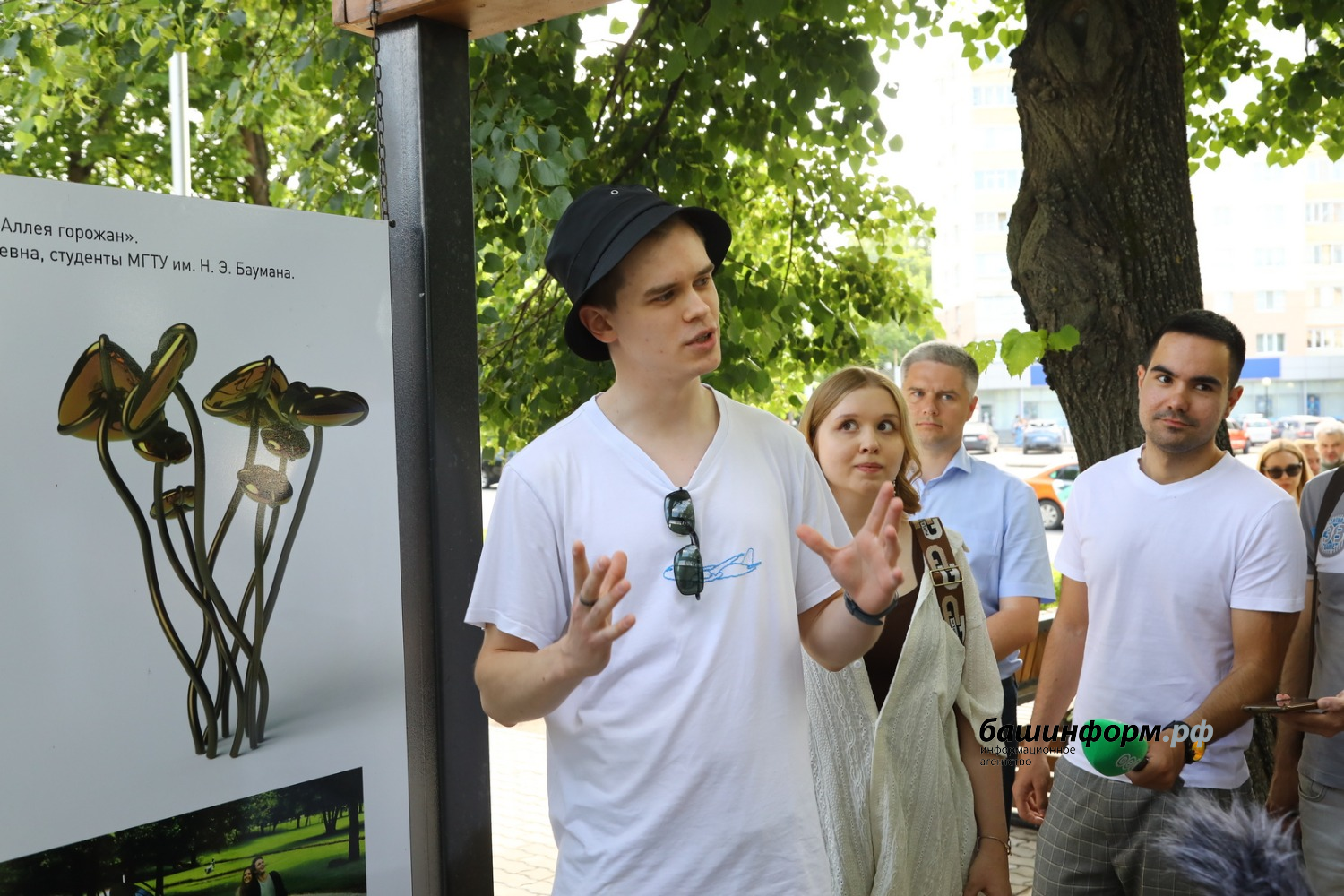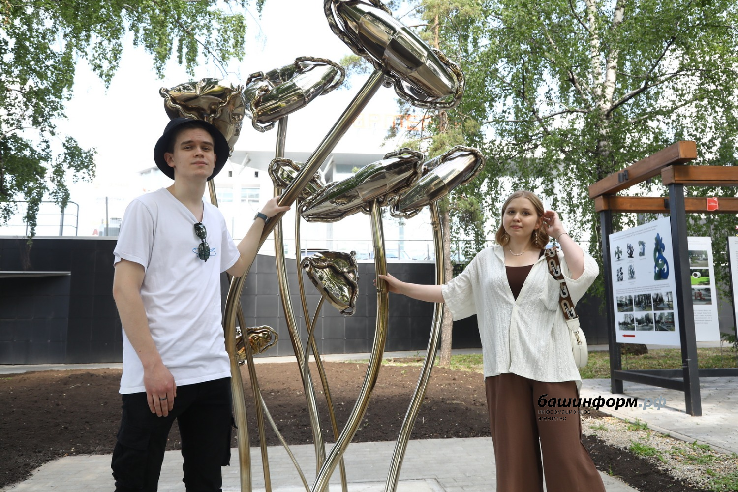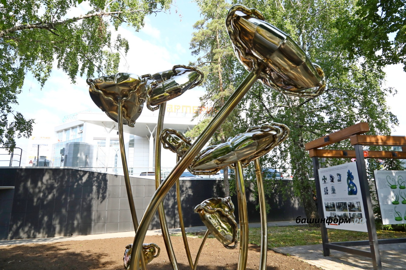 Сад современной городской скульптуры «Аллея горожан» открылся сегодня, 10 июня, в Уфе на проспекте Октября. Здесь установили арт-объекты в форме грибов «Кровеносная лисичка», «Симфоническая сыроежка» и «Эчпочмята».