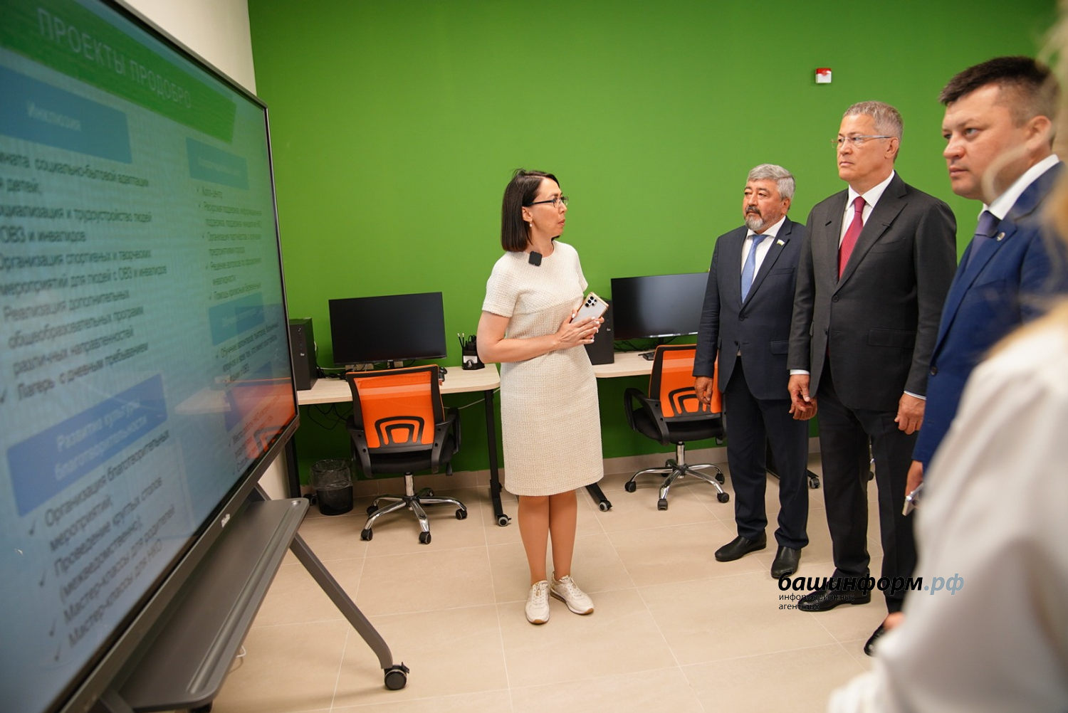 12 июня в Уфе Глава Башкортостана Радий Хабиров посетил недавно открывшийся городской центр «ПроДобро». Это коворкинг-центр, где дети с ограниченными возможностями здоровья до 18 лет могут получить поддержку в профессиональной ориентации и найти рабочие места. Мэр Уфы Ратмир Мавлиев рассказал, что центр создан в рамках реализации проекта «Уфа Добрая», который объединяет благотворительные фонды, некоммерческие организации, бизнес и активных горожан.