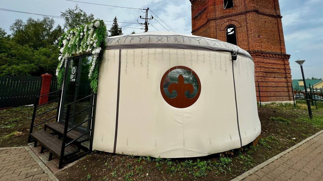 Никах-центр под названием «Махаббат» разместился в одной из юрт на территории Водонапорной башни, построенной на самой высокой точке на берегу реки Белой.