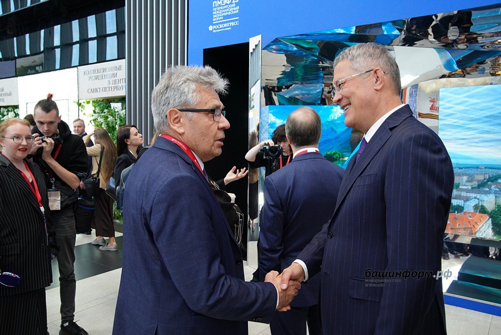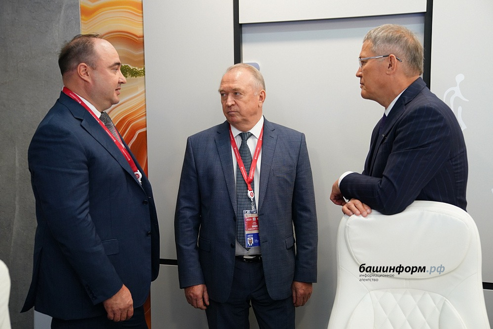 Глава Башкортостана Радий Хабиров общался с гостями и рассказывал о достижениях региона.