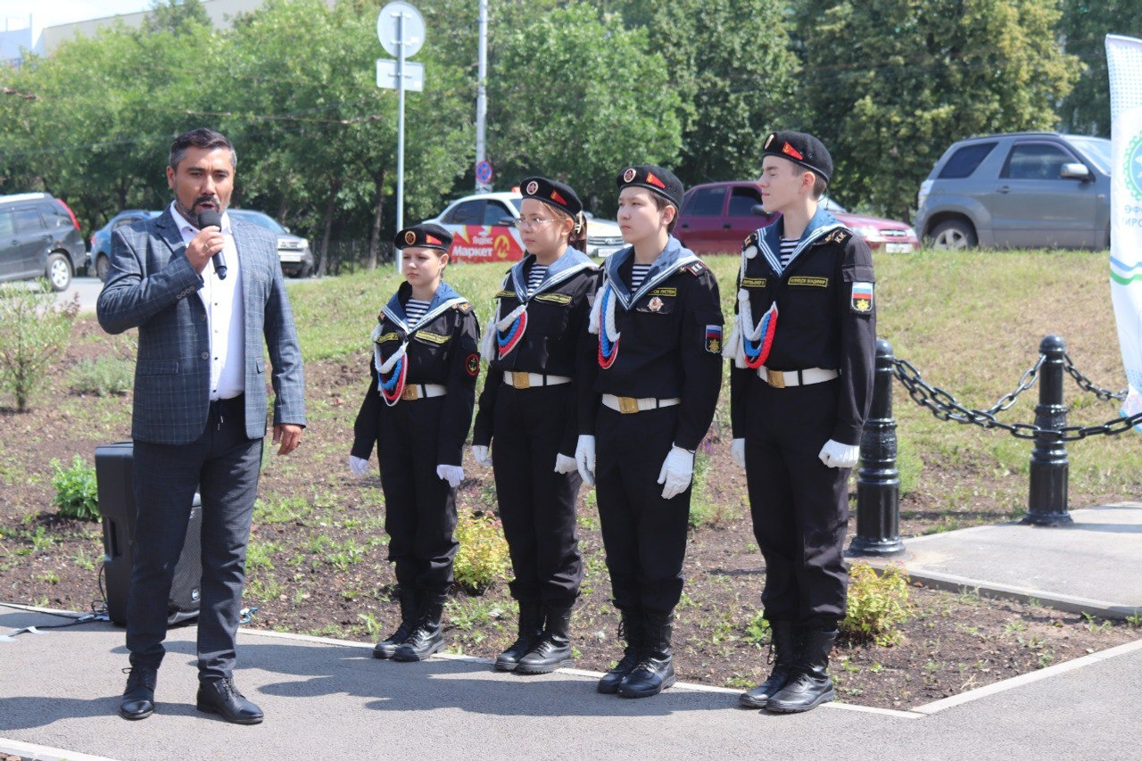 В торжественной церемонии открытия сквера приняли участие глава администрации Кировского района Уфы Илвир Нурдавлятов, депутат Горсовета, председатель Региональной общественной организации «Морское собрание Республики Башкортостан» Юлай Муратов, депутат Горсовета Павел Васильев, кадеты и педагоги школ № 5 и №9, жители района.