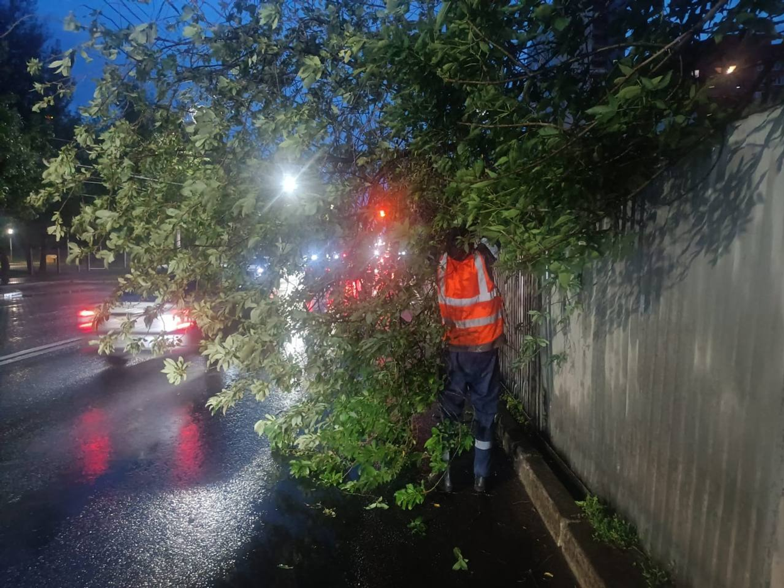 «Пару упавших веток, которые службы коммунального хозяйства вывезли ночью. Ливневые канализации работают исправно, так как в начале лета, с первыми дождями, они были очищены. Кроме того, в ночную смену механизированно вычищали смет в лотковой части дороги и вывозили мусор», — прокомментировал чиновник.