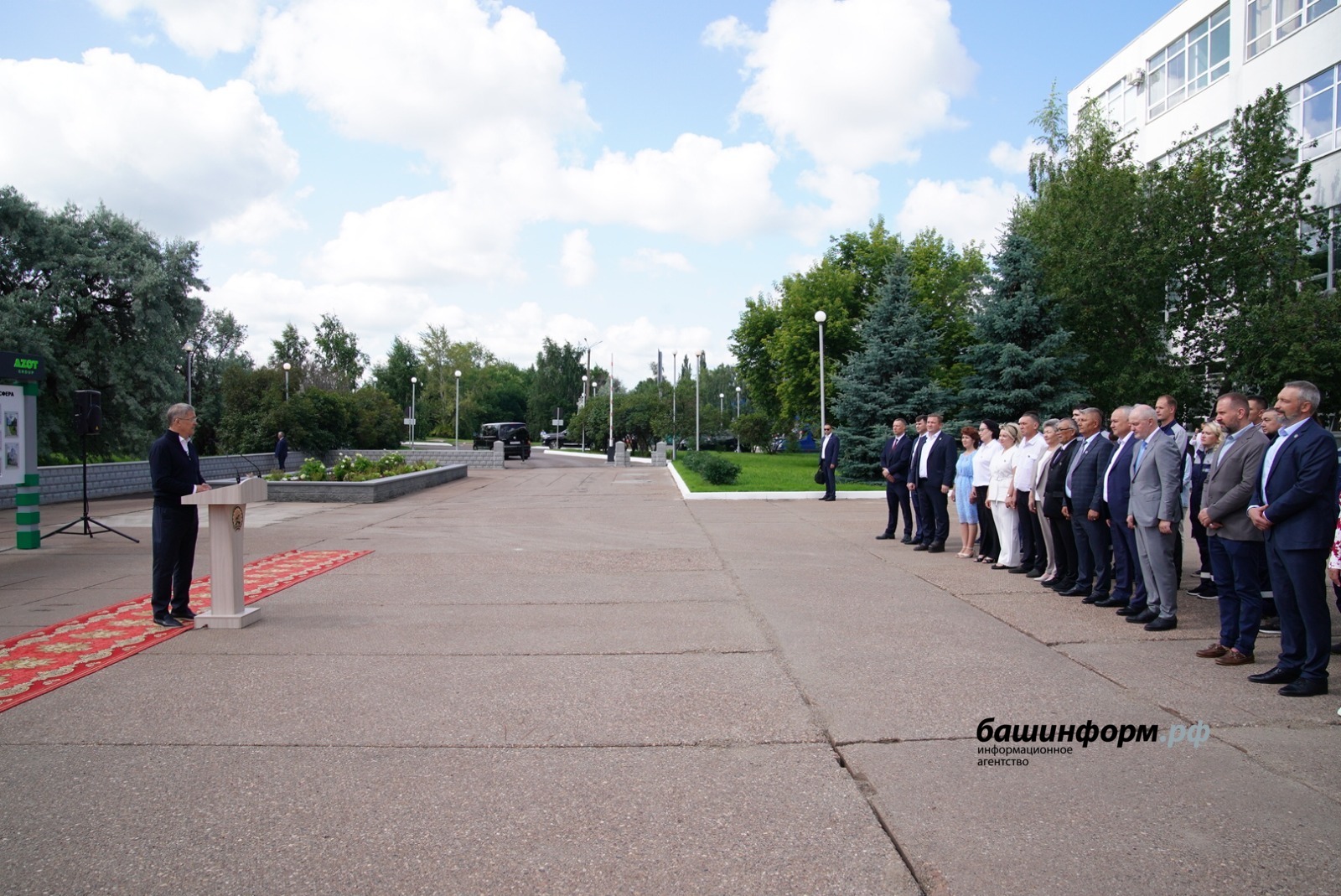 «Мелеузовцы и мы знали, в каком состоянии было предприятие. А сегодня предприятие на хорошем темпе развития. Самые лучшие ощущения и впечатления от того, что мы сейчас посмотрели. Это градообразующее предприятие Мелеуза. Передайте большой привет ветеранам и пожелания здоровья. Нашим коллегам из компании „Азот“ спасибо большое. Мы видим тёплое, настоящее отношение к предприятию, к людям, которые здесь работают. Это в современных условиях — залог хорошей работы, хороших прибылей, эффективности предприятия. Мы будем помогать. Очень важно проявлять заботу о людях. Такая точка роста появилась у нас в Мелеузе. И ничего, кроме радости, ничего, кроме удовлетворения этой работой, выразить не могу. Вас всех от души поздравляю. Желаю успехов. Ещё раз хочу сказать и трудовому коллективу, и руководству предприятия — Республика Башкортостан всегда с вами будет. И вместе мы пройдём сложные годы, и всё мы выдержим, и всё у нас получится», — отметил Радий Хабиров.