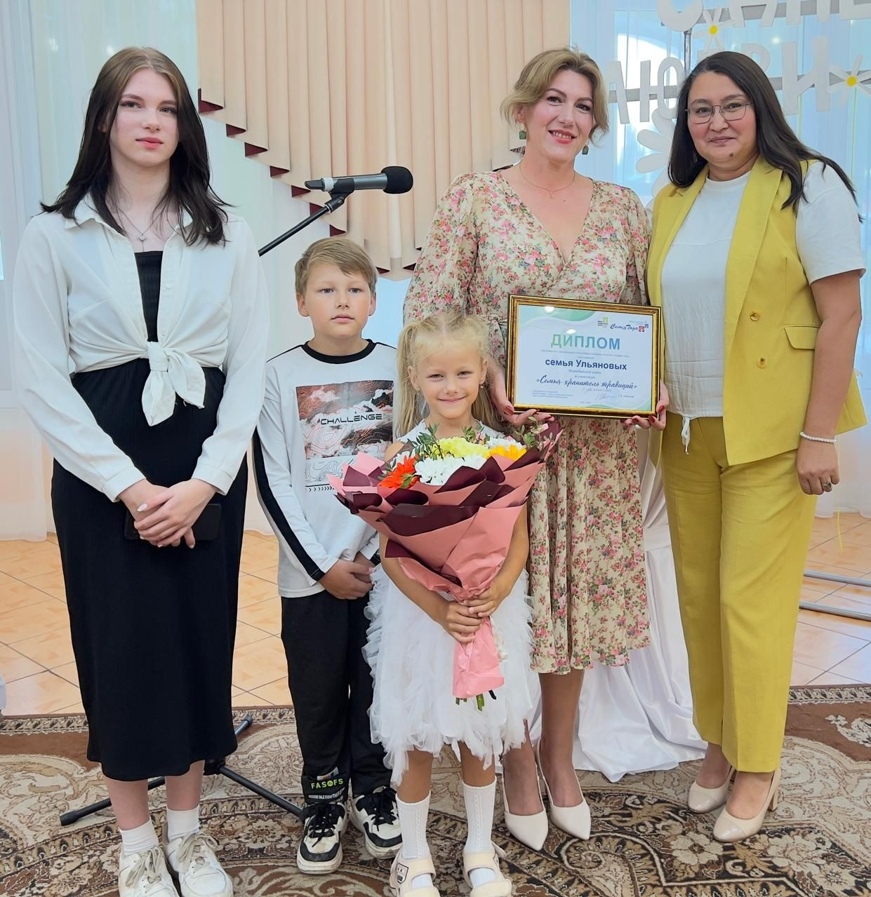 Поздравляли семью Ульяновых, которая представляла район на республиканском этапе Всероссийского конкурса «Семья года» и стала обладательницей в номинации «Семья – хранитель традиций», сообщил глава районной администрации Азат Ишемгулов.