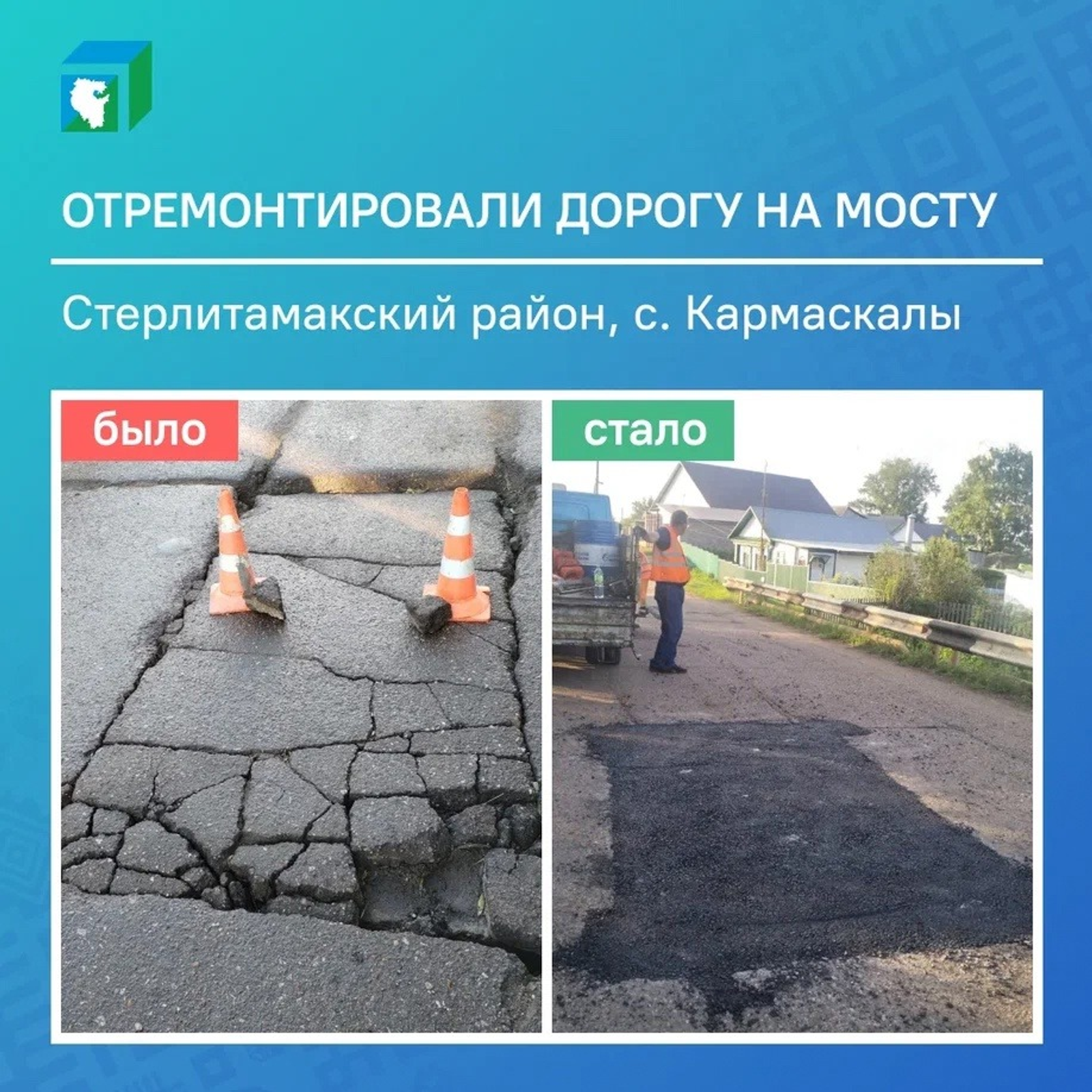«Администрация муниципалитета оперативно взяла в работу обращение жителей в соцсетях от 9 июля. В этот же день Казадаевский сельсовет сообщил, что профильные службы дорогу на мосту в с. Кармаскалы отремонтировали», — прокомментировали в ЦУРе.
