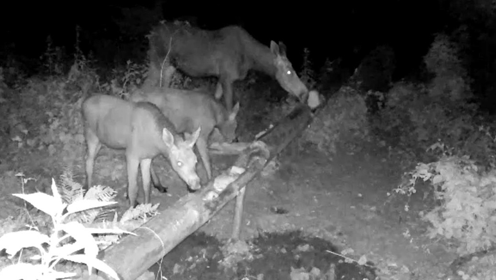 Фотоловушка, установленная на территории государственного природного зоологического заказника «Белоозерский», зафиксировала милую сцену из жизни дикой природы. Лосиха с двумя лосятами пришла на кормовую площадку, чтобы подкрепиться.