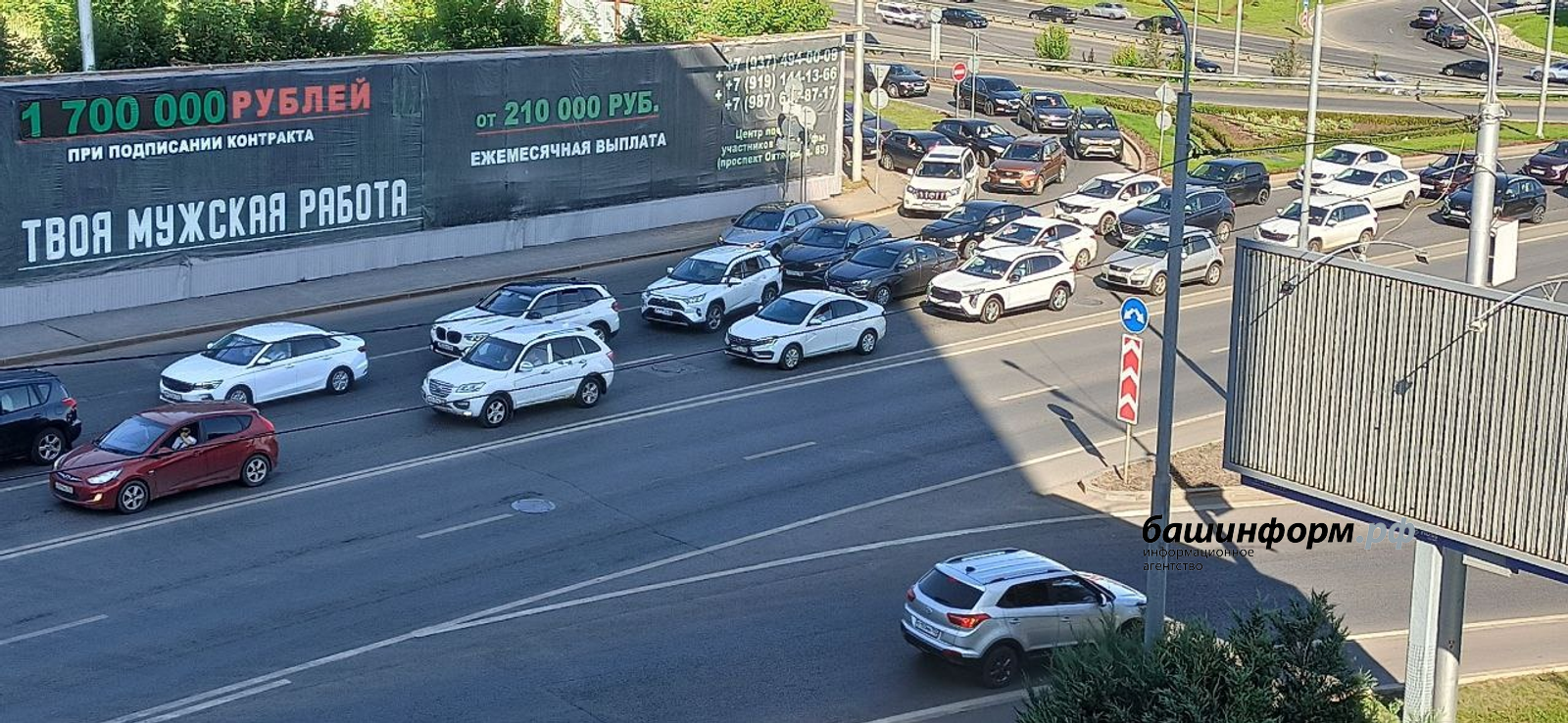 Сегодня в конце рабочего дня Уфу сковали вечерние пробки. Плотность движения автотранспорта на улицах столицы достигает 8-9 баллов.