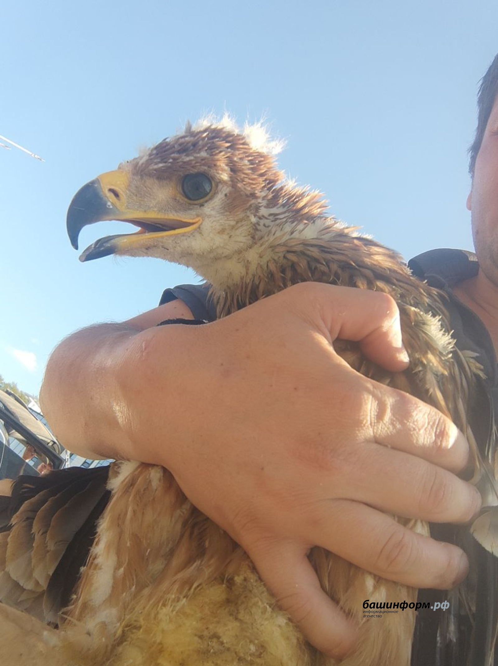 В центре предположили, что это канюк, но как потом выяснилось, это птенец краснокнижного орла-могильника. Птенец ещё не до конца оперился и не умеет летать, отметили в «Пин и Пуф». Кроме того, непонятно, как птица оказалось на данной местности.