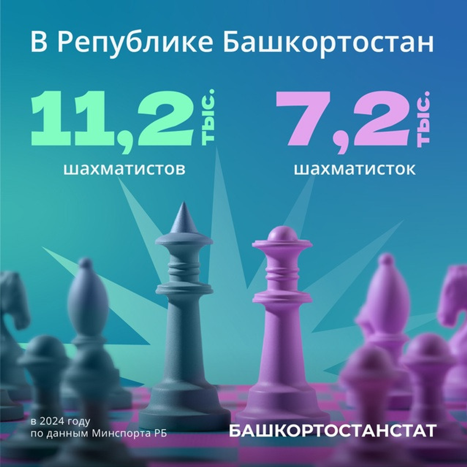 На начало 2025 года в Башкирии было зарегистрировано 18,4 тысячи шахматистов, из которых 39% – женщины. Среди них 1,4 тысячи спортсменов с официальными разрядами, а 13 спортсменов удостоены звания кандидатов в мастера спорта.