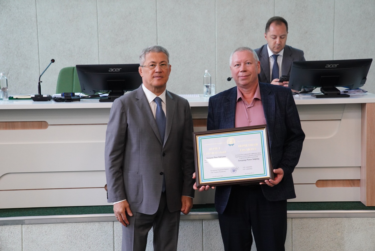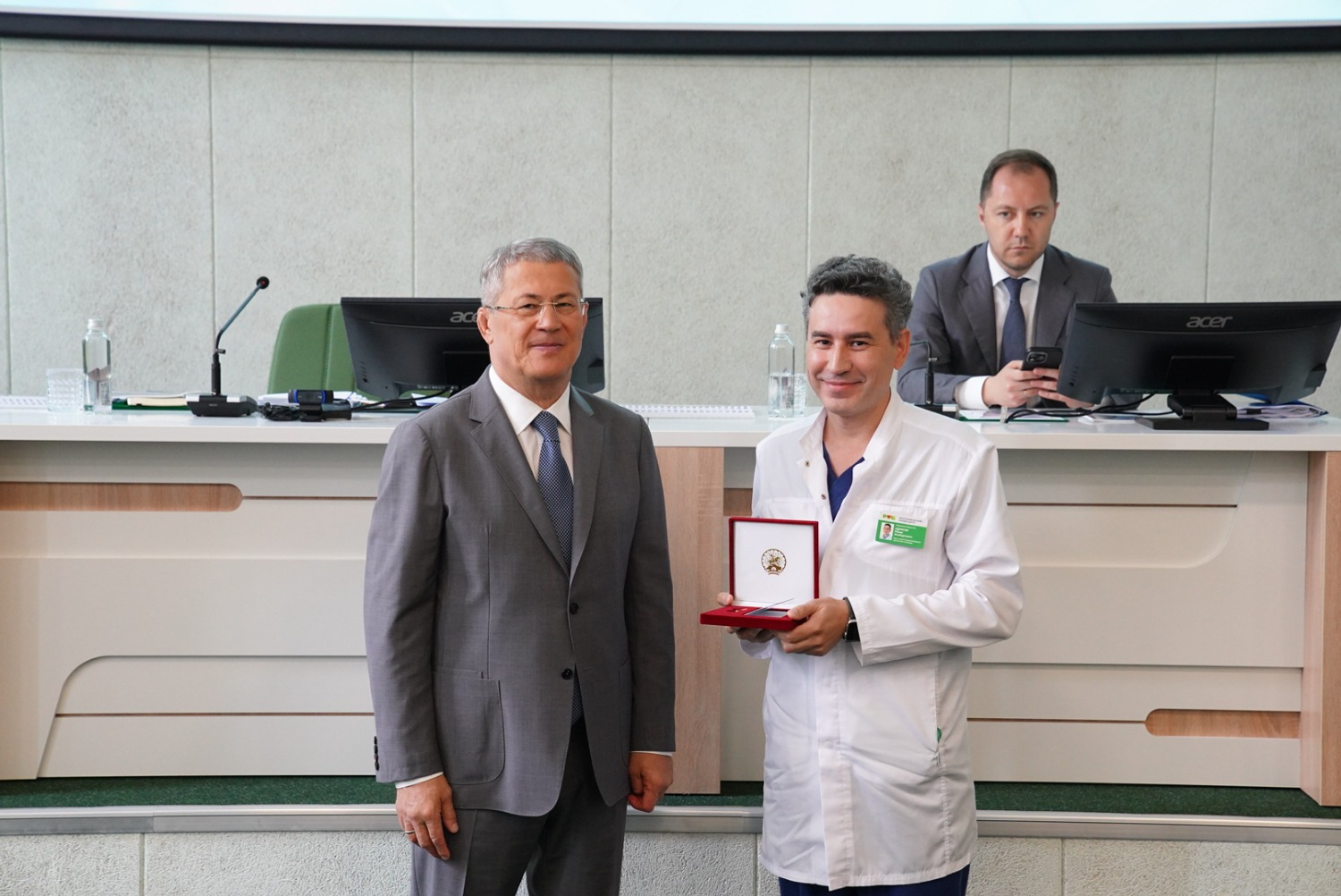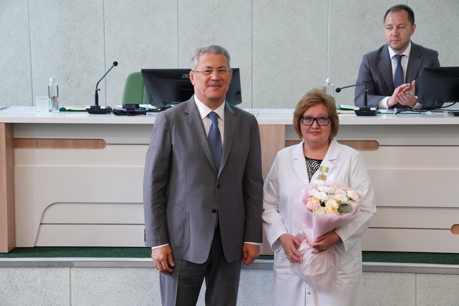 Открывая заседание, Глава Башкортостана поблагодарил строителей, медработников региона за успешную реализацию проекта по созданию хирургического корпуса, а также вручил государственные награды республики.