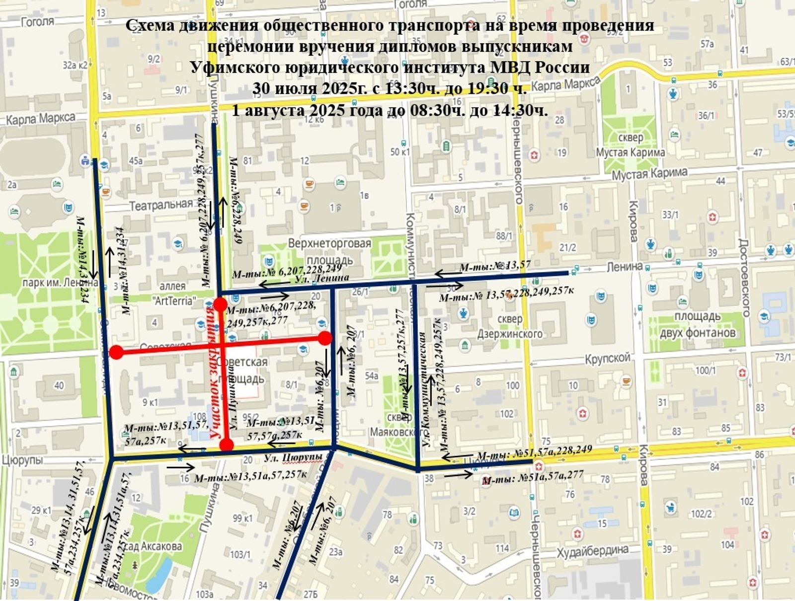 По данным пресс-службы мэрии города, 30 июля с 13.30 до 19.30, а также 1 августа с 08.30 до 14.30 будут перекрыты ул. Пушкина — от ул. Цюрупы до ул. Ленина и ул. Советская — от ул. Заки Валиди до ул. Октябрьской революции.