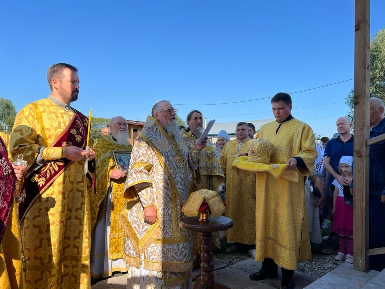 Митрополит Никон вместе с игуменом Успенского Свято-Георгиевского мужского монастыря Варлаамом и протоиереем Сергием Катаевым провел торжественную церемонию освящения возрождённого храма.