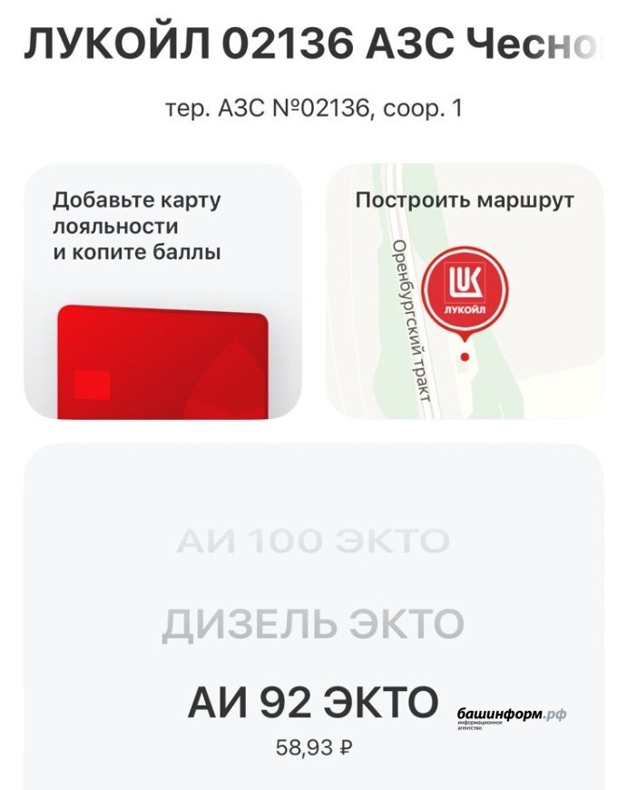 Если сравнивать цены с другими компаниями, то, например, на АЗС «Татнефти» литр АИ-95 обойдется водителю в 60,65 рубля, а АИ-92 — в 56,05 рубля. На АЗС «Лукойл» литр АИ-95 Экто стоит 63,43 рубля, АИ-92 — 58,93 рубля, АИ-100 — 87,18 рубля, а ДТ Экто — 70,46 рубля. На АЗС IRBIS литр АИ-92 стоит 56,49 рубля, АИ-92 XTRim - 57,49 рубля, АИ-95 XTRim - 60,99 рубля и ДТ - 66,99 рубля.