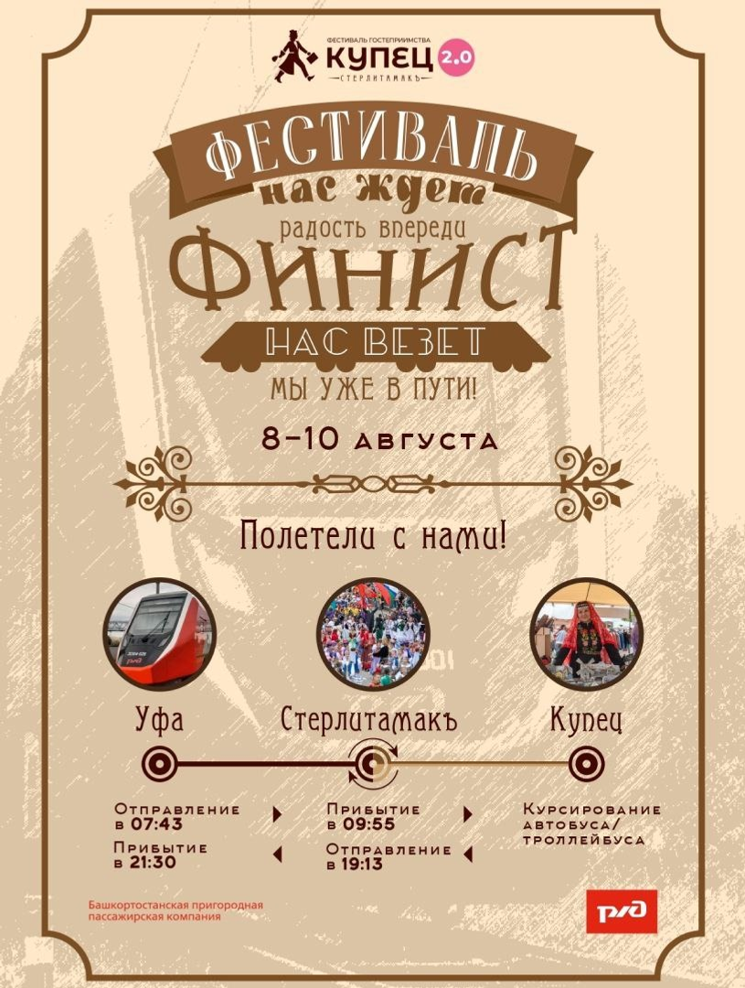 В дни работы фестиваля «Купец 2.0» в Стерлитамаке (8–10 августа), на маршрут Уфа — Кумертау — Оренбург поставят современный восьмивагонный поезд «Финист», сообщили в БППК. Уфимцы смогут с комфортом добраться до места проведения мероприятия и тем же вечером вернуться домой.