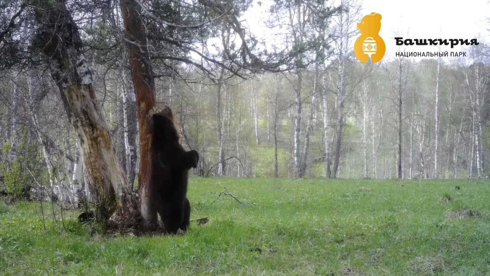 В фотоловушку национального парка «Башкирия» попал момент, когда большой бурый медведь активно чешет спинку о дерево, таким образом оставляя на нем метки. Теперь они служат сигналом для остальных обитателей леса, что эта территория занята.