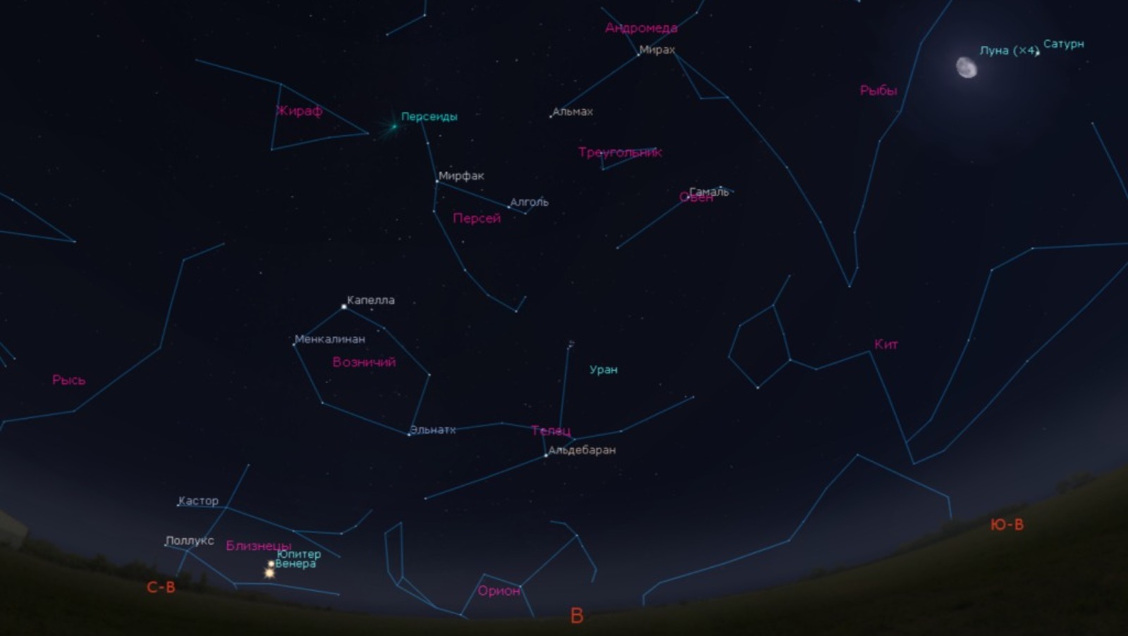 «Максимальное их количество будет наблюдаться после полуночи и за городом, где нет засветки неба от городского освещения», — прокомментировали в пресс-службе планетария.